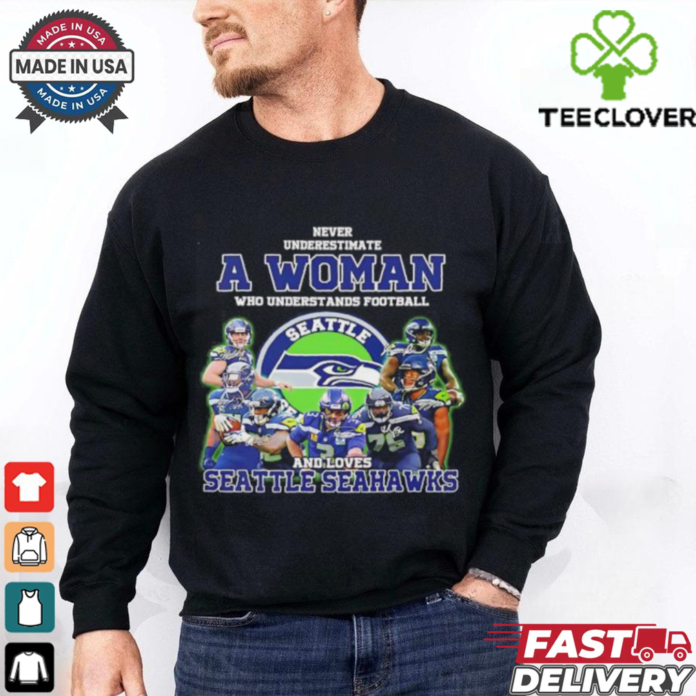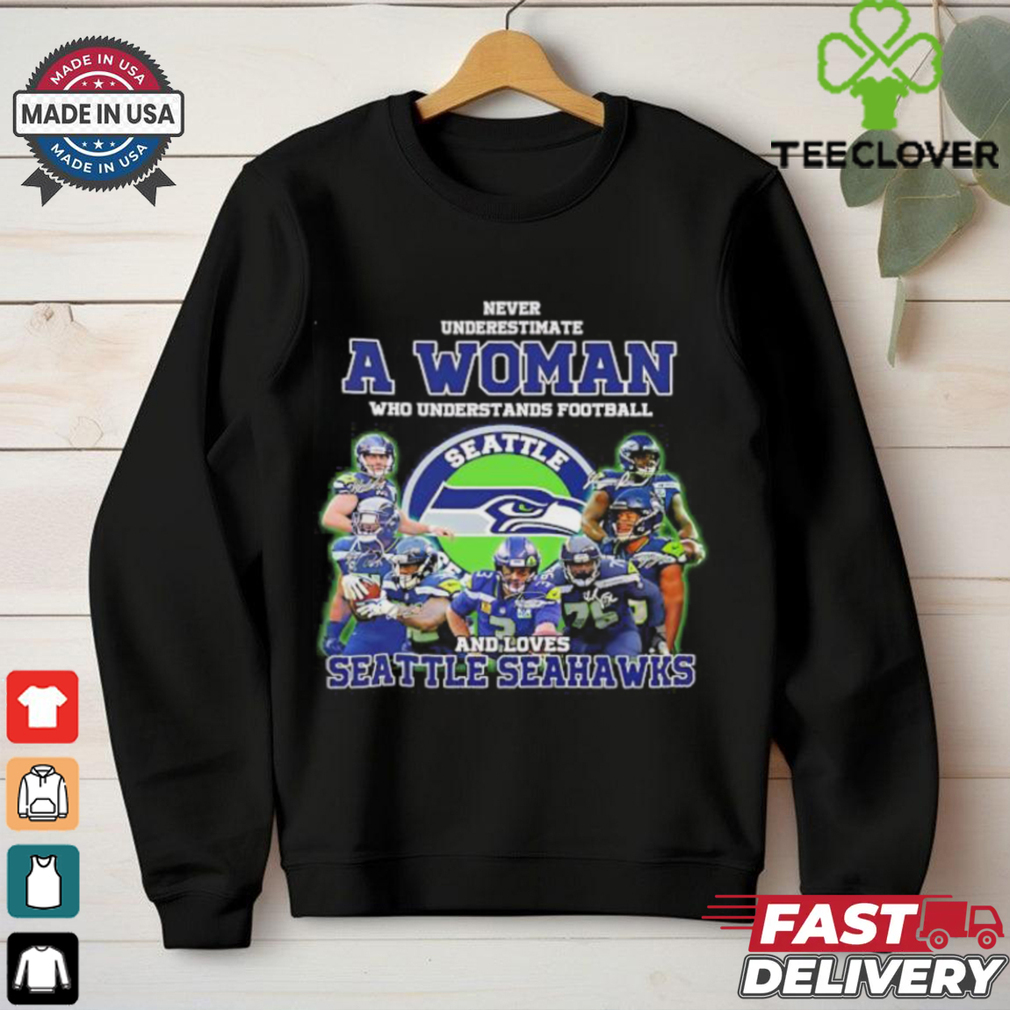 ()Never underestimate a woman who understand football and loves Seattle Seahawks shirt hoodie, tank top, sweater and long sleeve t-shirt: best style for you