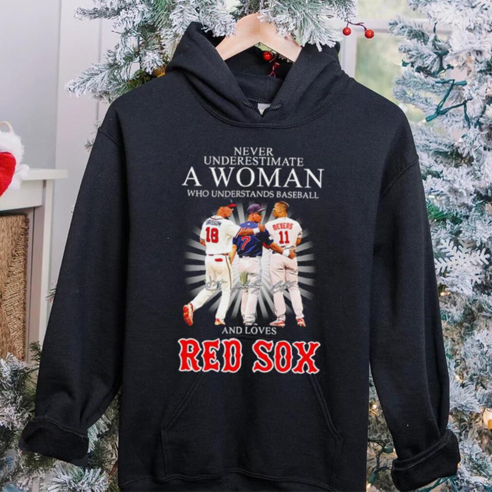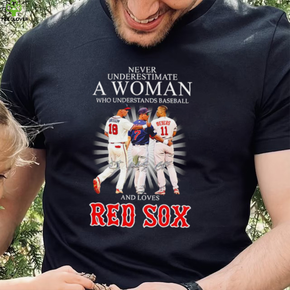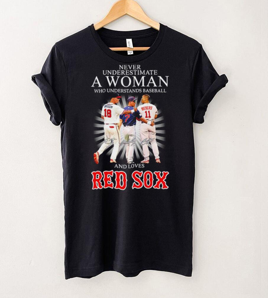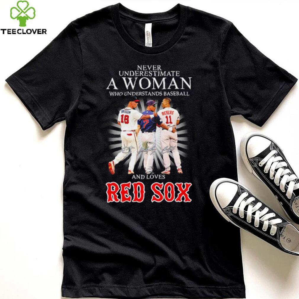 ()Never underestimate a woman who understands baseball and loves Red Sox famous player signatures shirt