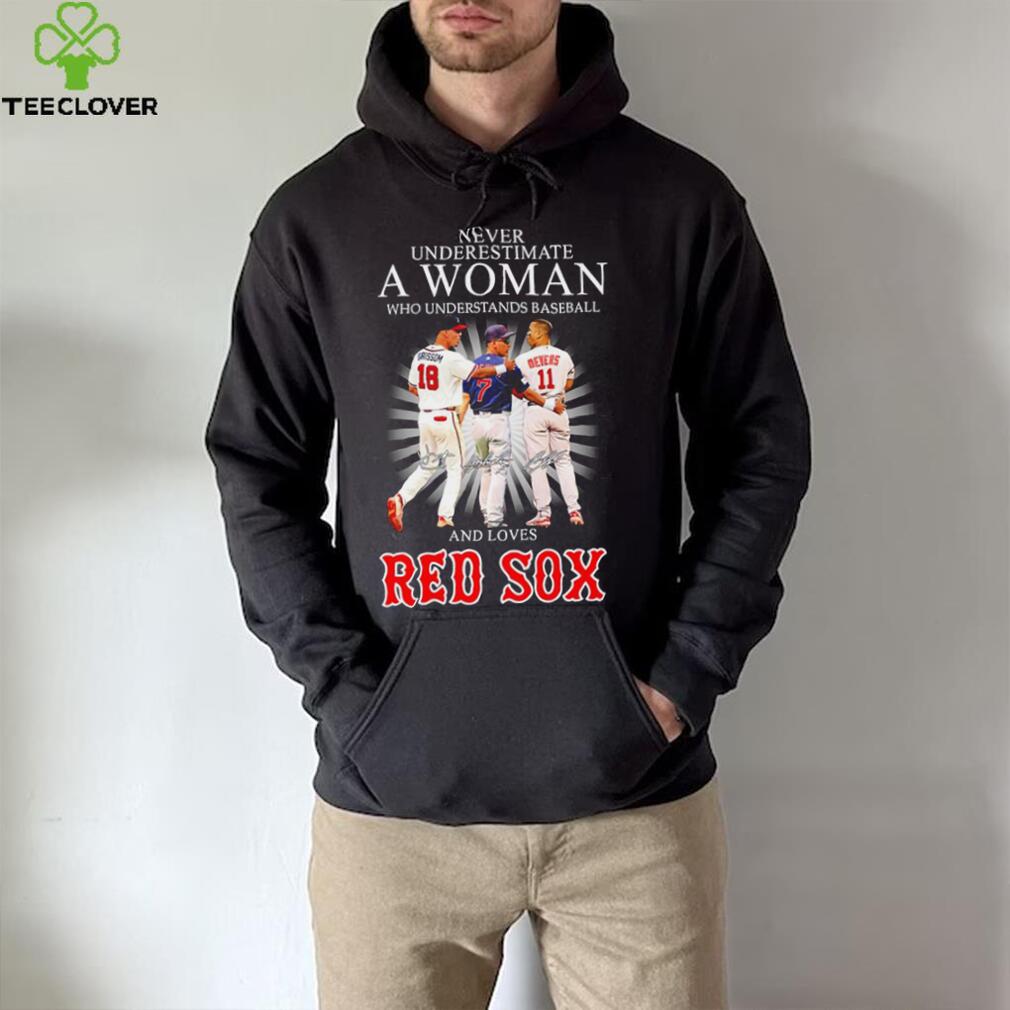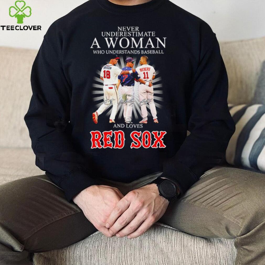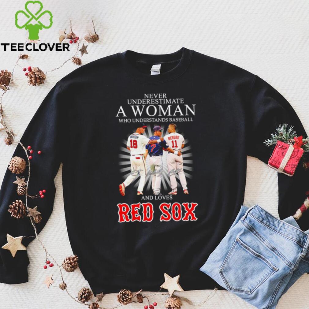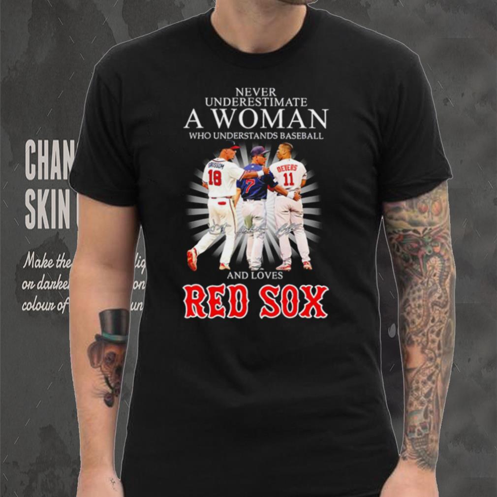 ()Never underestimate a woman who understands baseball and loves Red Sox famous player signatures shirt