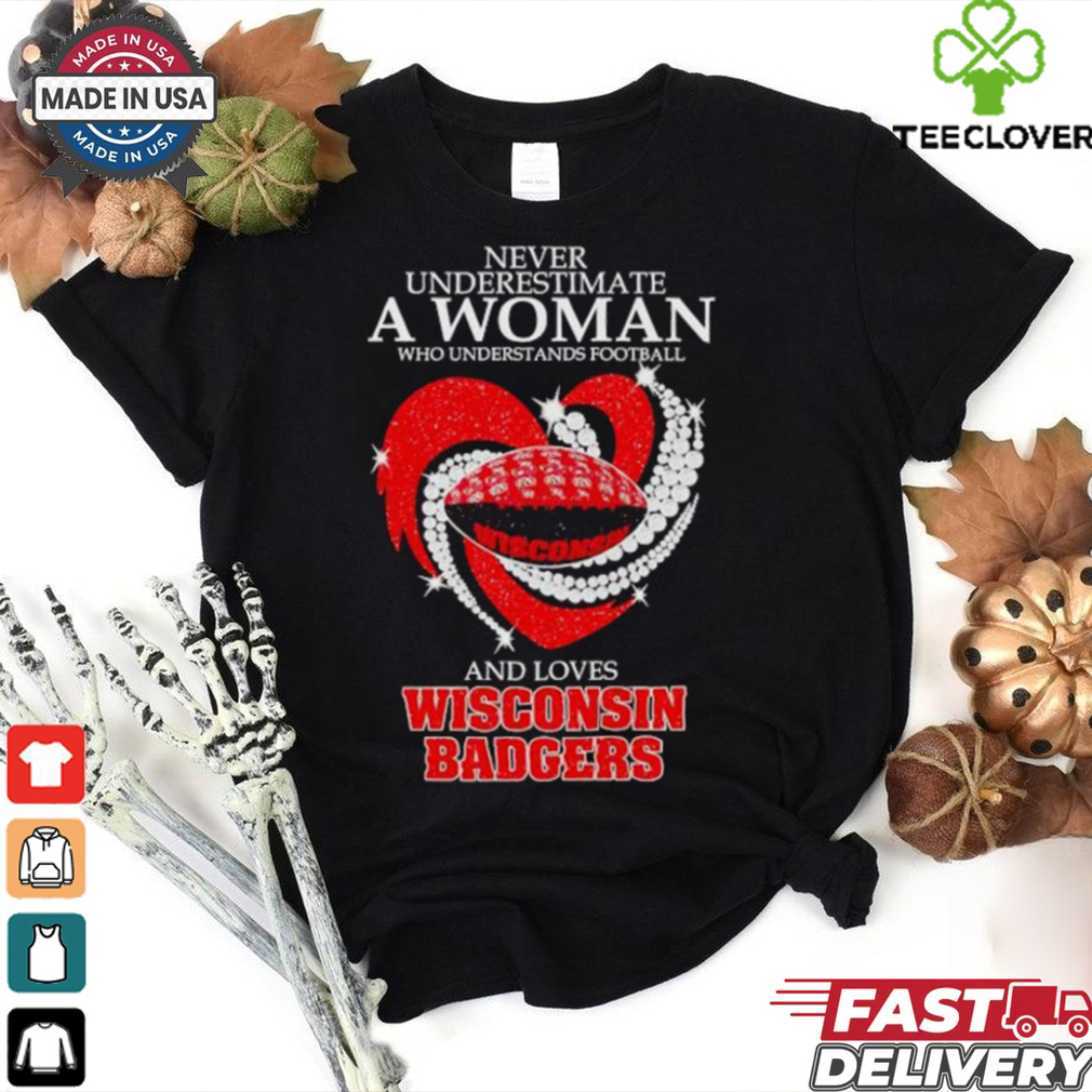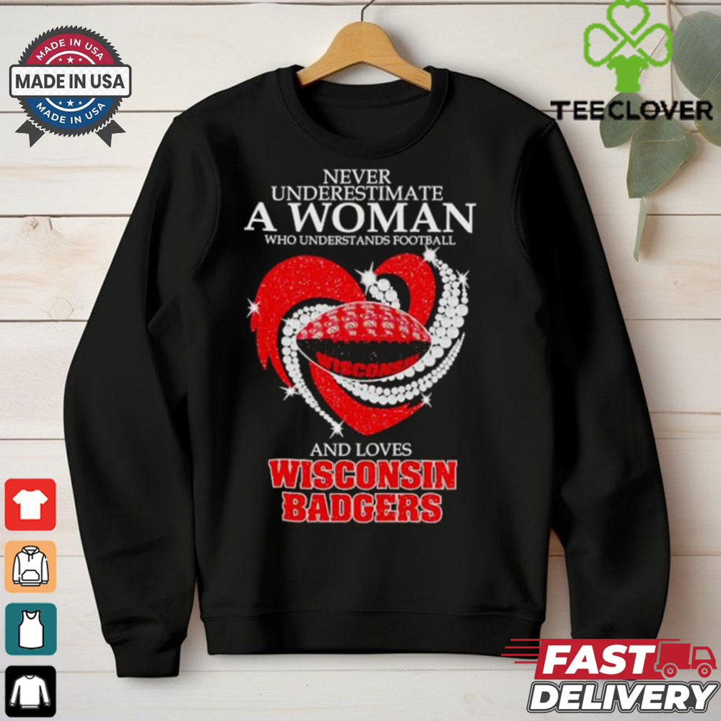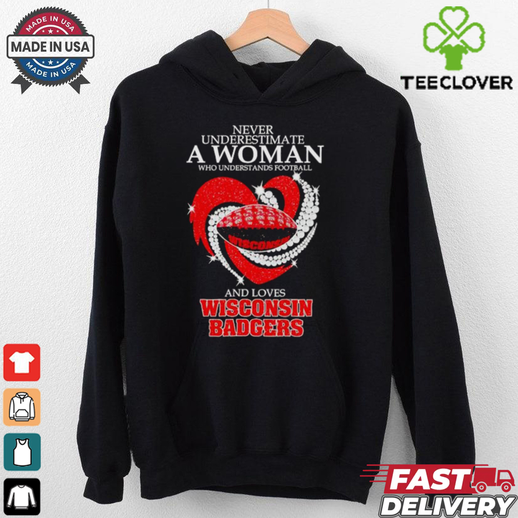 ()Never underestimate a woman who understands football and love Wisconsin Badgers shirt hoodie, tank top, sweater and long sleeve t-shirt: best style for you