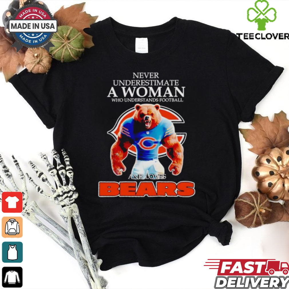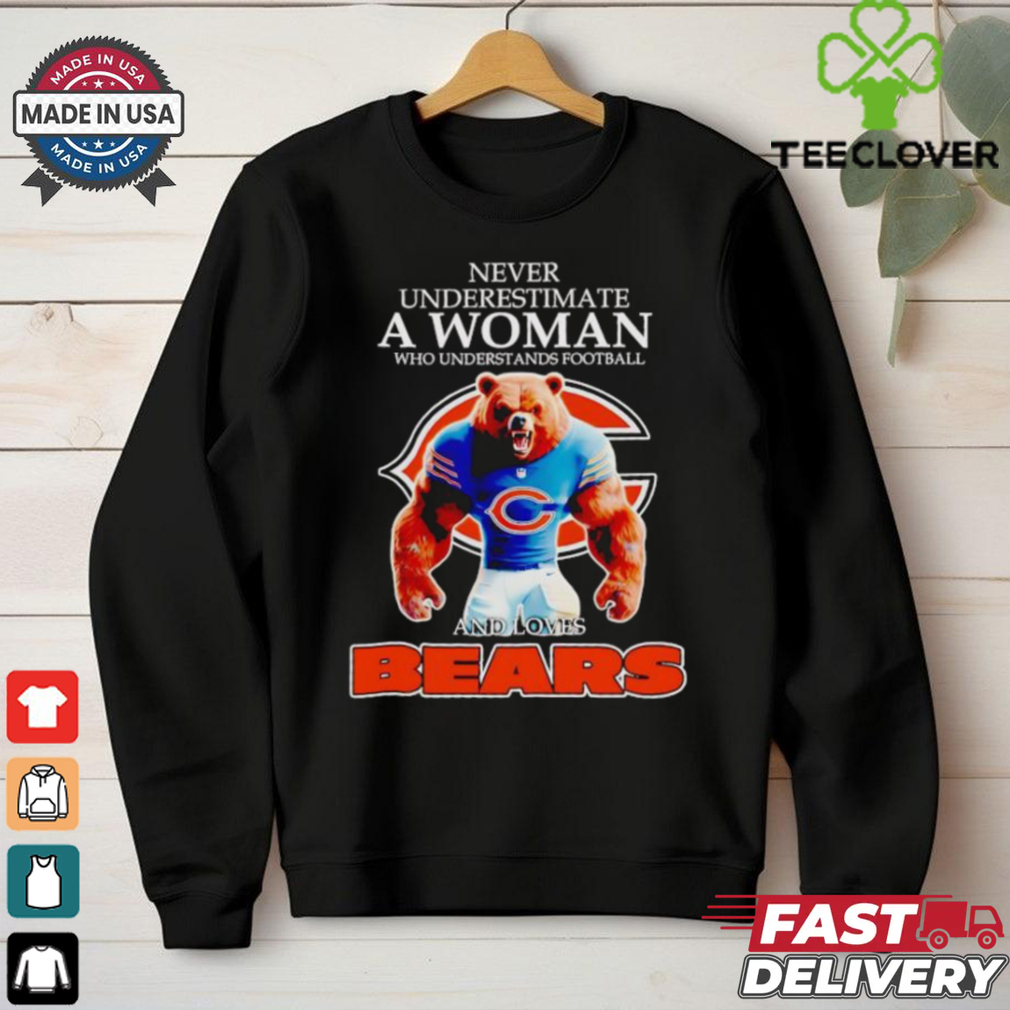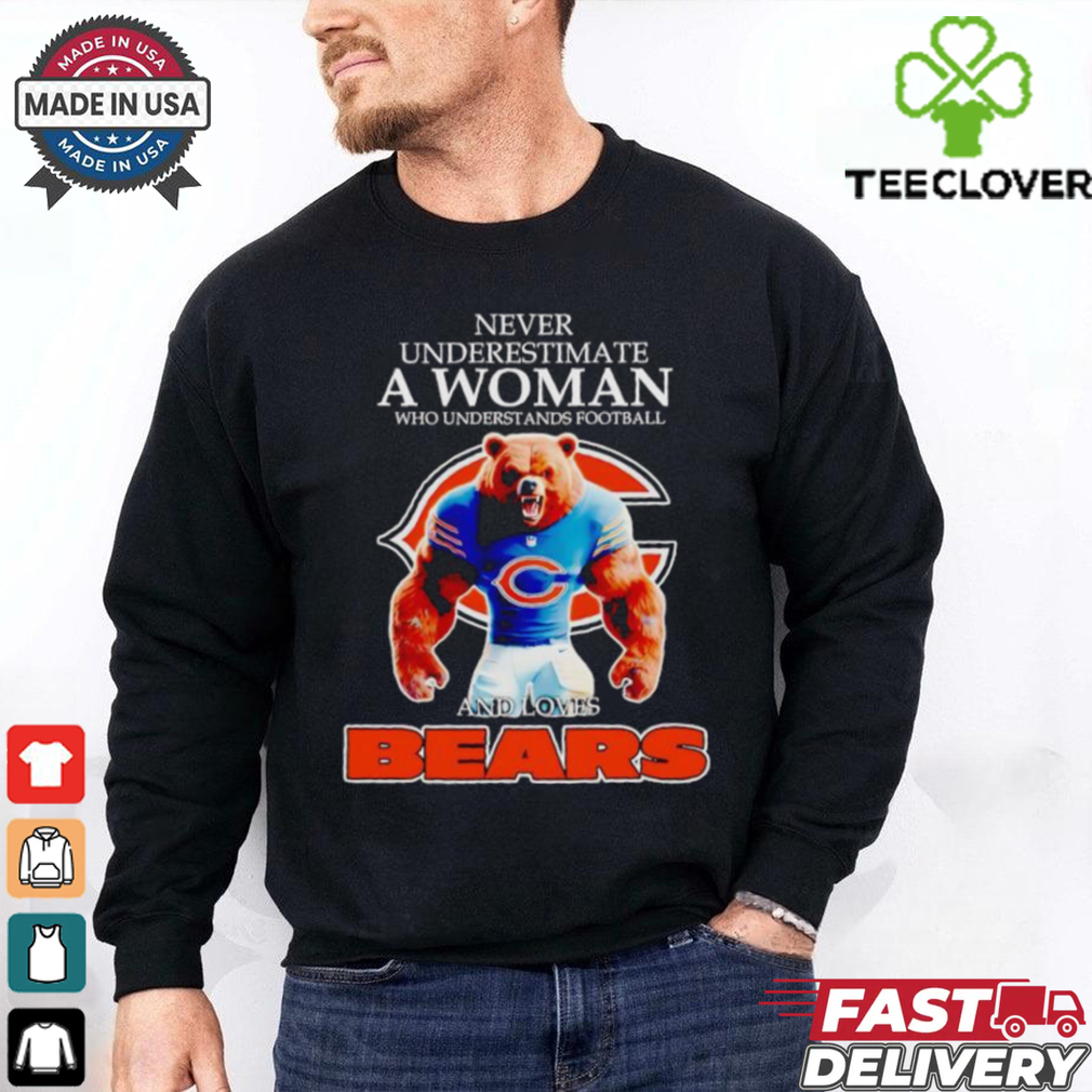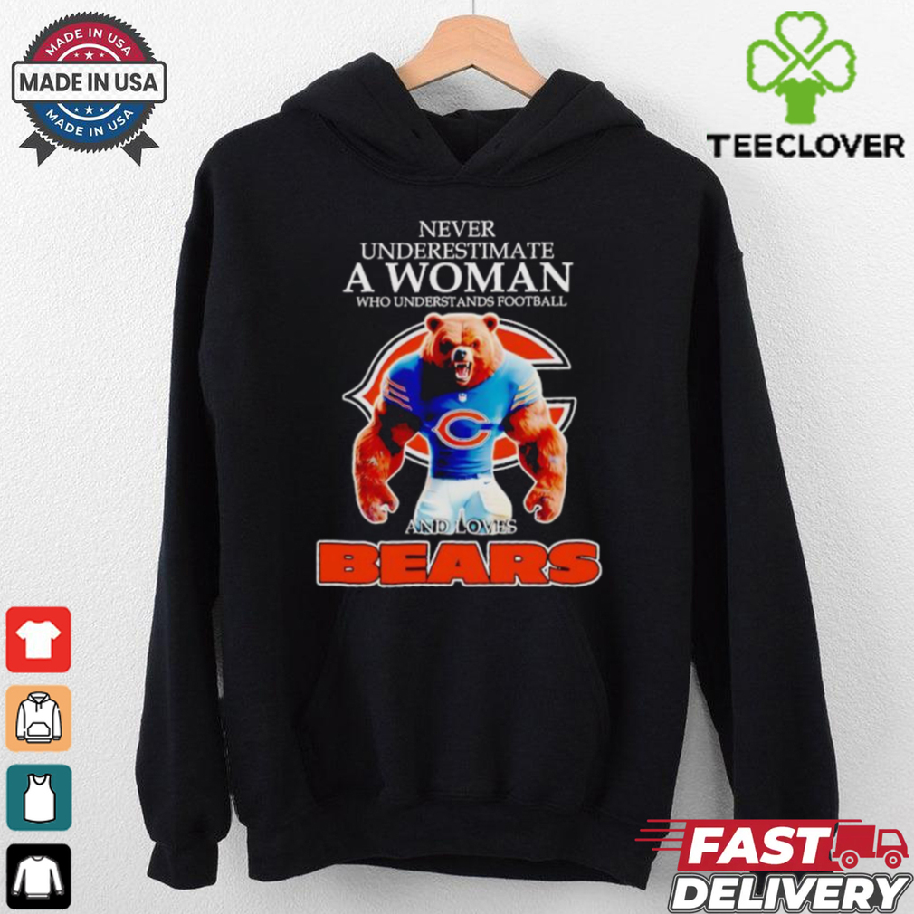 ()Never underestimate a woman who understands football and loves Chicago Bears shirt hoodie, tank top, sweater and long sleeve t-shirt: best style for you