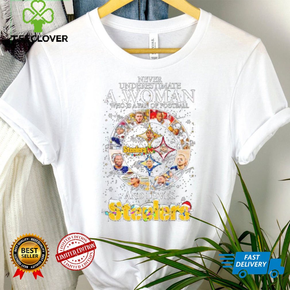 ()Never underestimate a woman who understands football and loves Steelers Christmas shirt