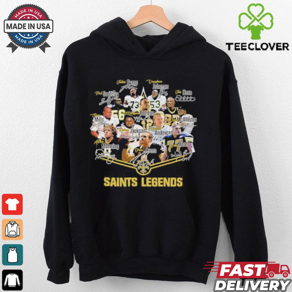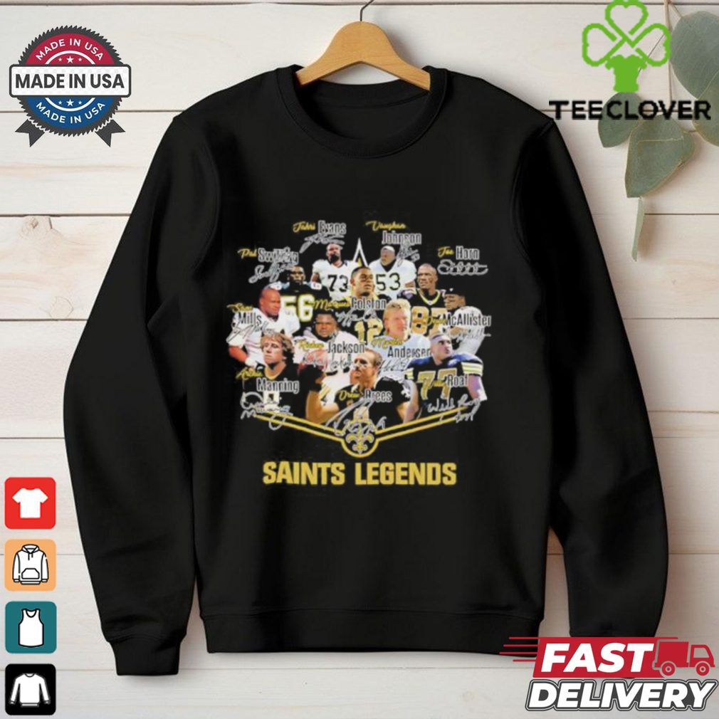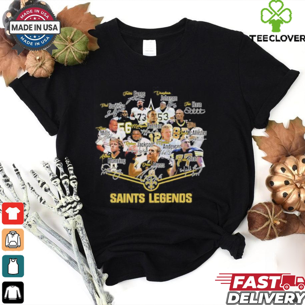 About 2 months later, I ended up going to New Orleans Saints Legends signatures shirt , and thanks to having everything cleared up, I only ended up with 40 hours of community service. But still, this is something that could have messed up things until I turned 18. Still, everything was straightened out, the store had decided not to press any charges and the judge had his giggles at my expense. In the end, there was no damage and my actions werenโt intentional to peek at women so blatantly and incompetently after all, and store cameras confirmed that I had run in suddenly in a panic and dropped everything, which matched my story.
