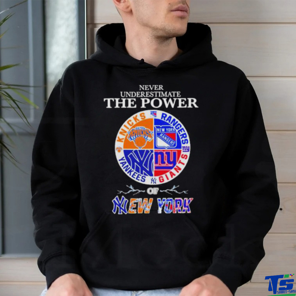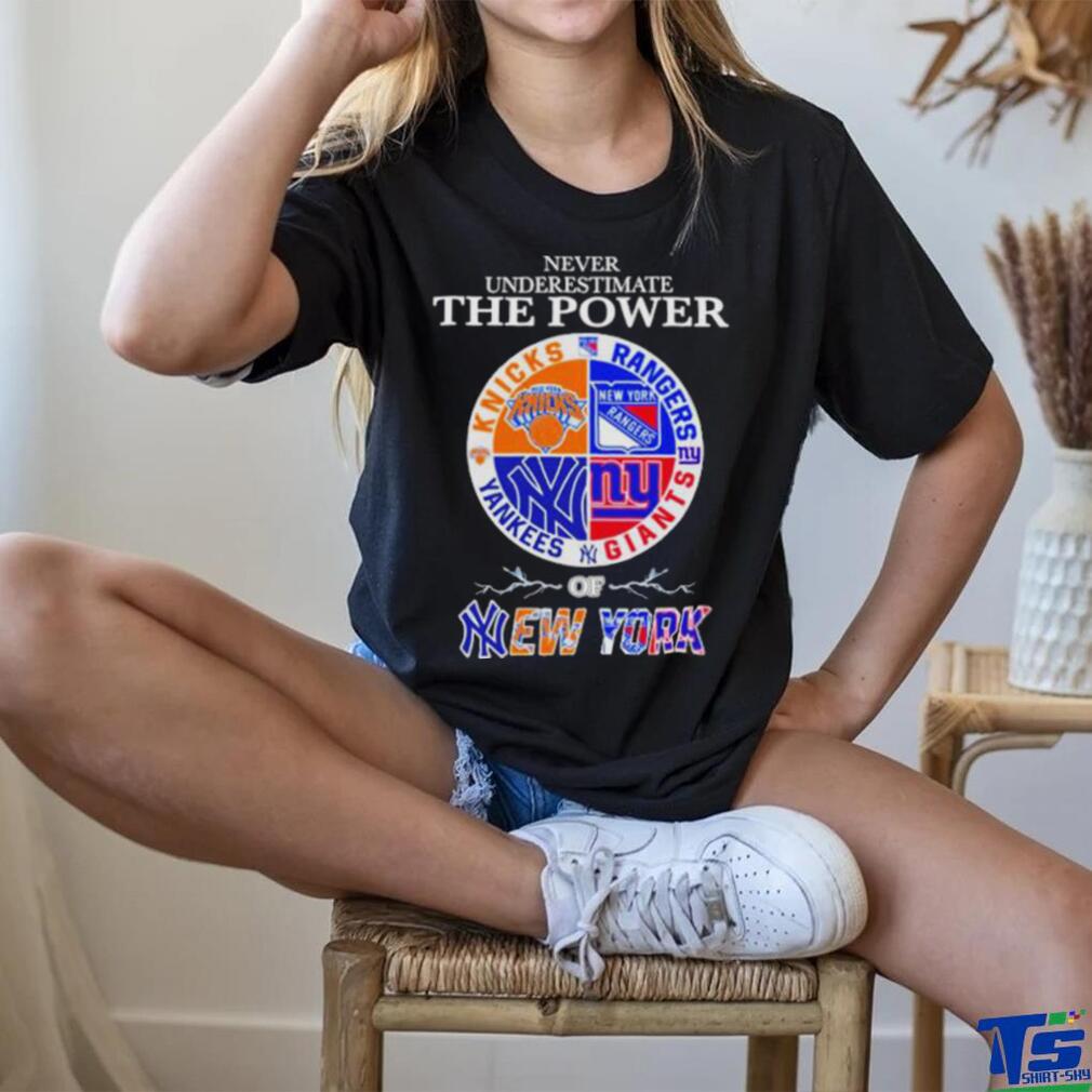 ()New York Knick New York Rangers New York Giants and New York Yankees Never Underestimate the Power of New York 2023 shirt, Hoodie, Sweater, Vneck, Unisex and T-shirt