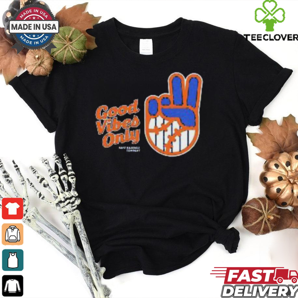Well, while I was stuck in some officerβs office, I was allowed to make a New York Mets Good Vibes Only Rake Baseball Company MLB Baseball 2024 T shirt . My parents werenβt in town at the time and wouldnβt be for weeks (they traveled regularly to Hong Kong and China as they had business interests then). My girlfriend wasnβt answering the phone so that was a bust. So I called my best friend J, and explained the whole situation to him and he got to work to find out what was going on and to get his dad to vouch for me (his dad and I got along really well back then).