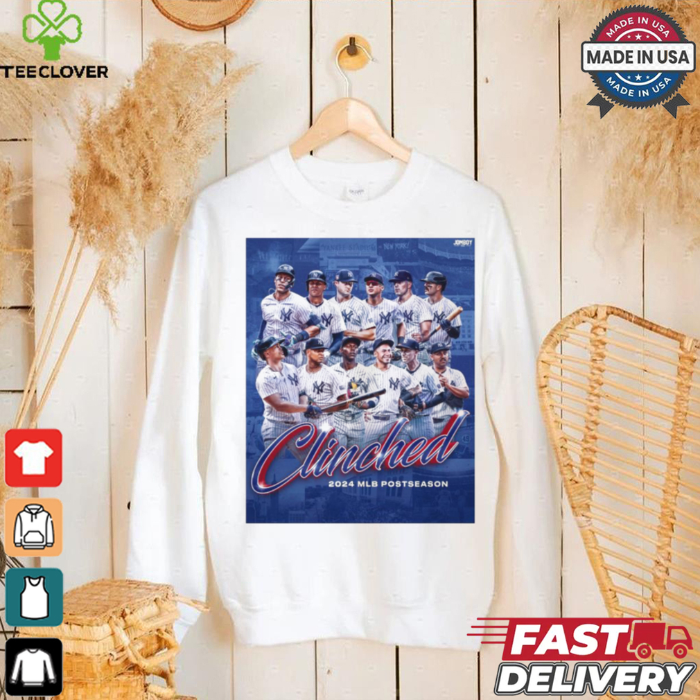 No! Itβs much too early for New York Yankees Clinched MLB Postseason 2024 Back To October Poster t shirt . I want to enjoy this fall (although it seems that fall has decided not to visit us this year) and each holiday as it comes. One year, ages ago, I put up the Christmas tree on Thanksgiving weekend and by the time Christmas came around, all the decorations were dusty and I was sick of looking at it..lol. That was a good lesson. Christmas, for me, is sparkling snow, pine trees (not maples turning gold and red) and a very special time, especially if you have family (cherish them because some day they will be gone). Itβs a time of selflessness and love and that βChristmas spiritβ which is incredible which takes hold of you.