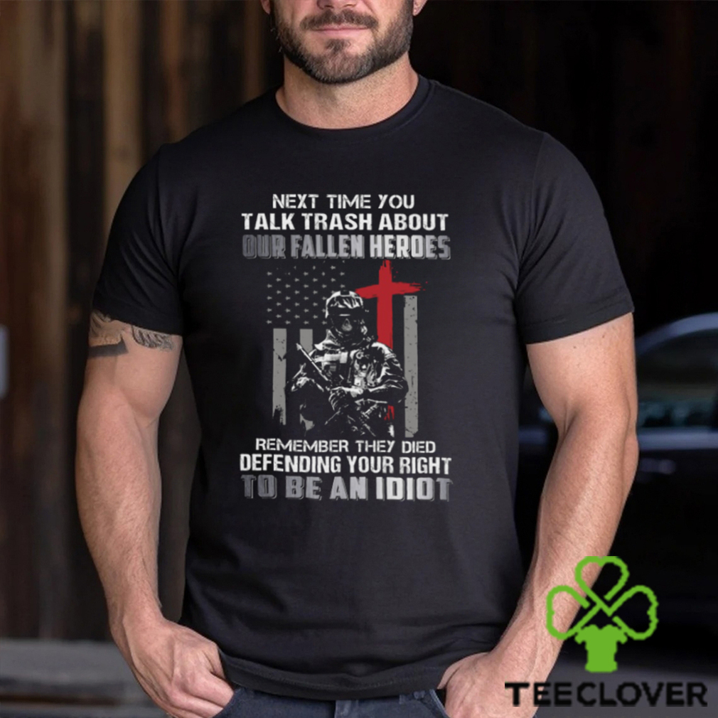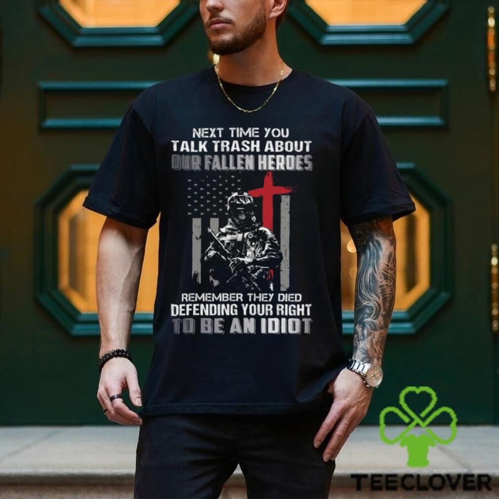 ()Next Time You Talk Trash About Our Fallen Heroes Remember They Died Defending Your Right To Be An Idiot Classic T Shirt hoodie, tank top, sweater and long sleeve t-shirt