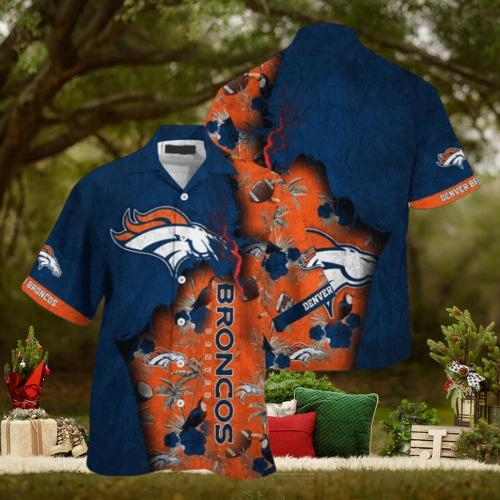 ()NFL Denver Broncos Navy Blue Orange Hawaiian Shirt,