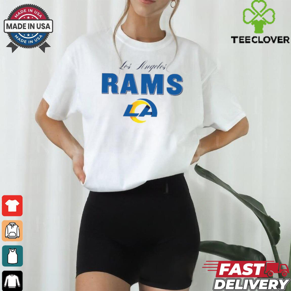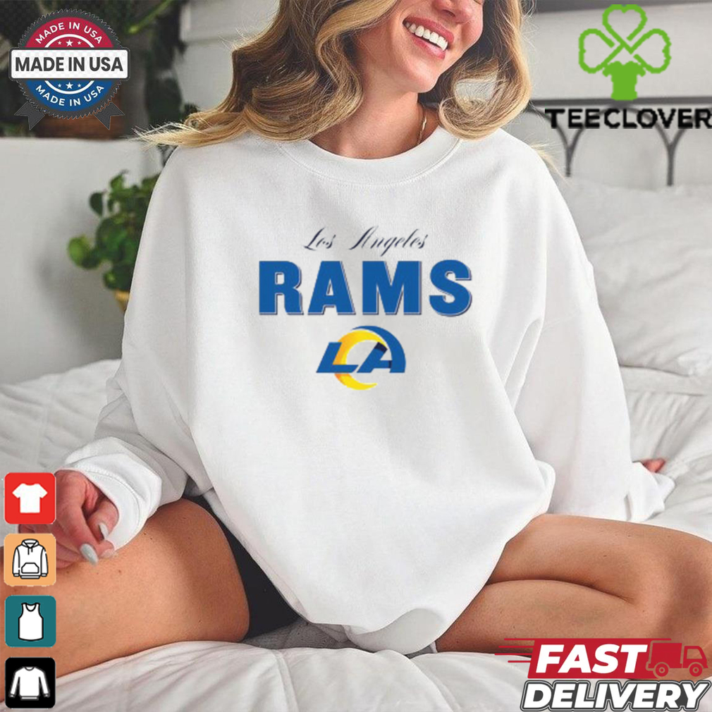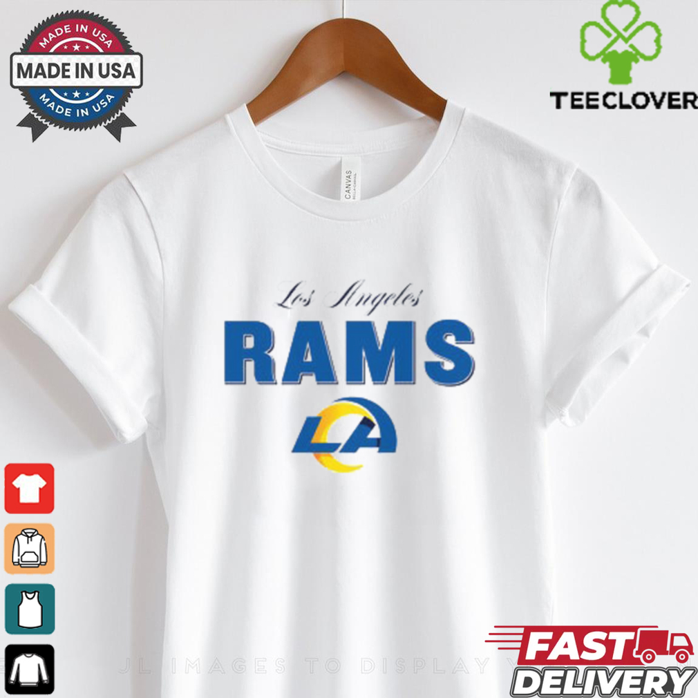 The identify weave is actually a combo of each cotton poplin and also NFL Los Angeles Rams Team Logo T Shirt . It is actually interweaved utilizing lengthy staple cotton (for additional gentleness) and also, similar to the Oxford t shirt interweave, just the warp thread is actually colored.These are actually distinctive males’s weaves that make an angled design and also provides the t-shirts fascinating tones. Each weaves are actually warmer than timeless poplin therefore are actually favoured in the chillier periods.