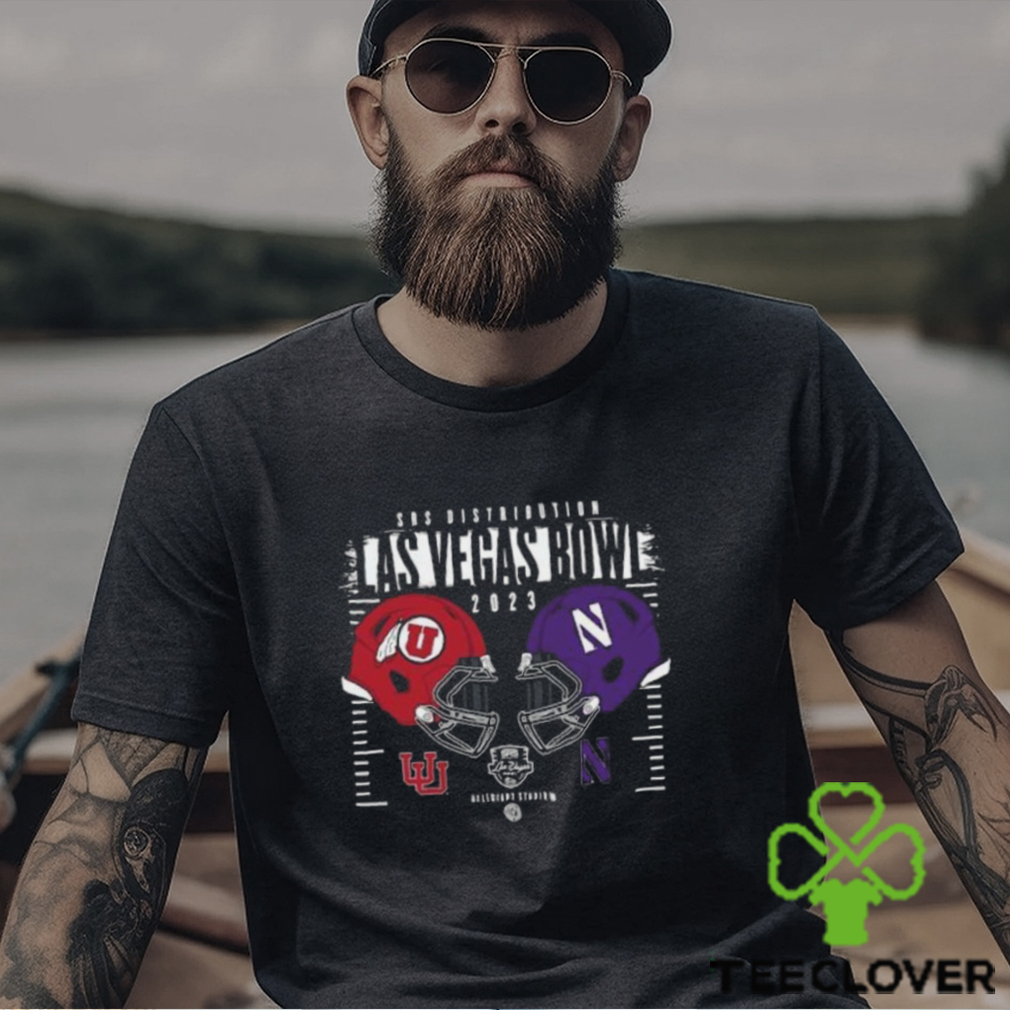 Northwestern Wildcats vs Utah Utes Helmet SRS Distribution Las Vegas Bowl 2023 Logo T Shirt