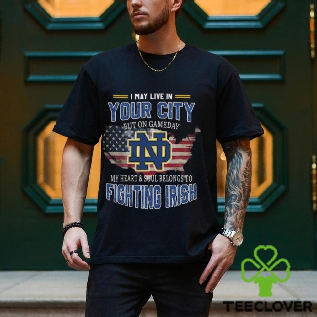 ()Notre Dame Fighting Irish I May Live In Your City But On Gameday My Heart & Soul Belongs To Fighting Irish T shirt hoodie, tank top, sweater and long sleeve t-shirt