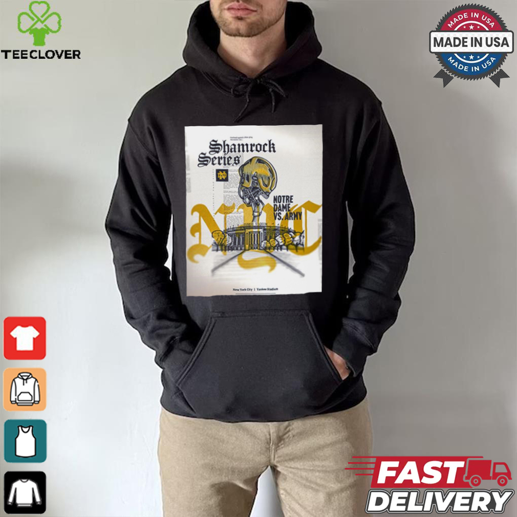 Geography. Pick the local team. If you are in say Miami, congratulations you can be a Dolphins fan and if you want to support teams across several levels, then the Dolphins for the NFL, Miami Hurricane among the power college programs and Florida International Panthers in the so-called Group of 5. If you are in an area not near an NFL team pick a Notre Dame vs. Army Football 2024 Shamrock Series Game At Yankee Stadium T Shirt college and could even find enjoyment following a small regional team that plays in Division II or III or Division I FCS. Aesthetic reasons. You like the dark blue and orange combo of the Denver Broncos then that can be your team (also opens up the Boise State Broncos in college football). Iβm a Denver Broncos fan and Kansas City is a Notre Dame vs. Army Football 2024 Shamrock Series Game At Yankee Stadium T ShirtΒ rival but I have to admit I like their home uniform. Like red and black? That gives you the Atlanta Falcons in the NFL, Texas Tech and Arkansas State and Cincinnati just off the top of my head. I donβt like the University of Texas but I happen to think their road uniform is one of the best in college football.