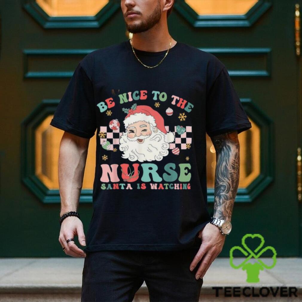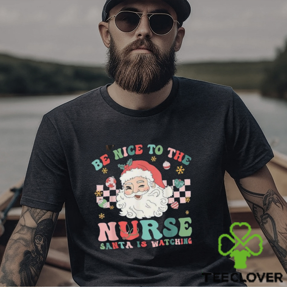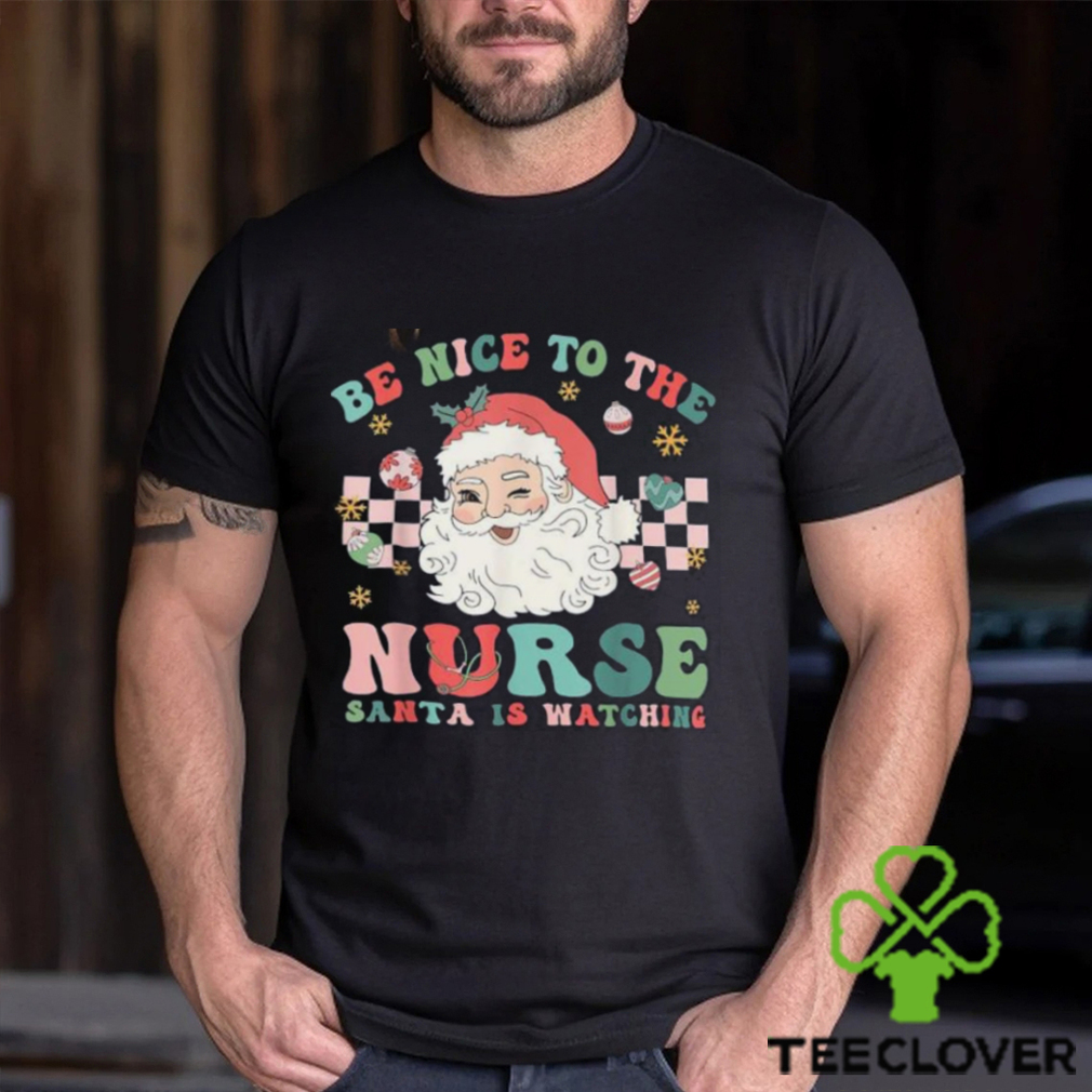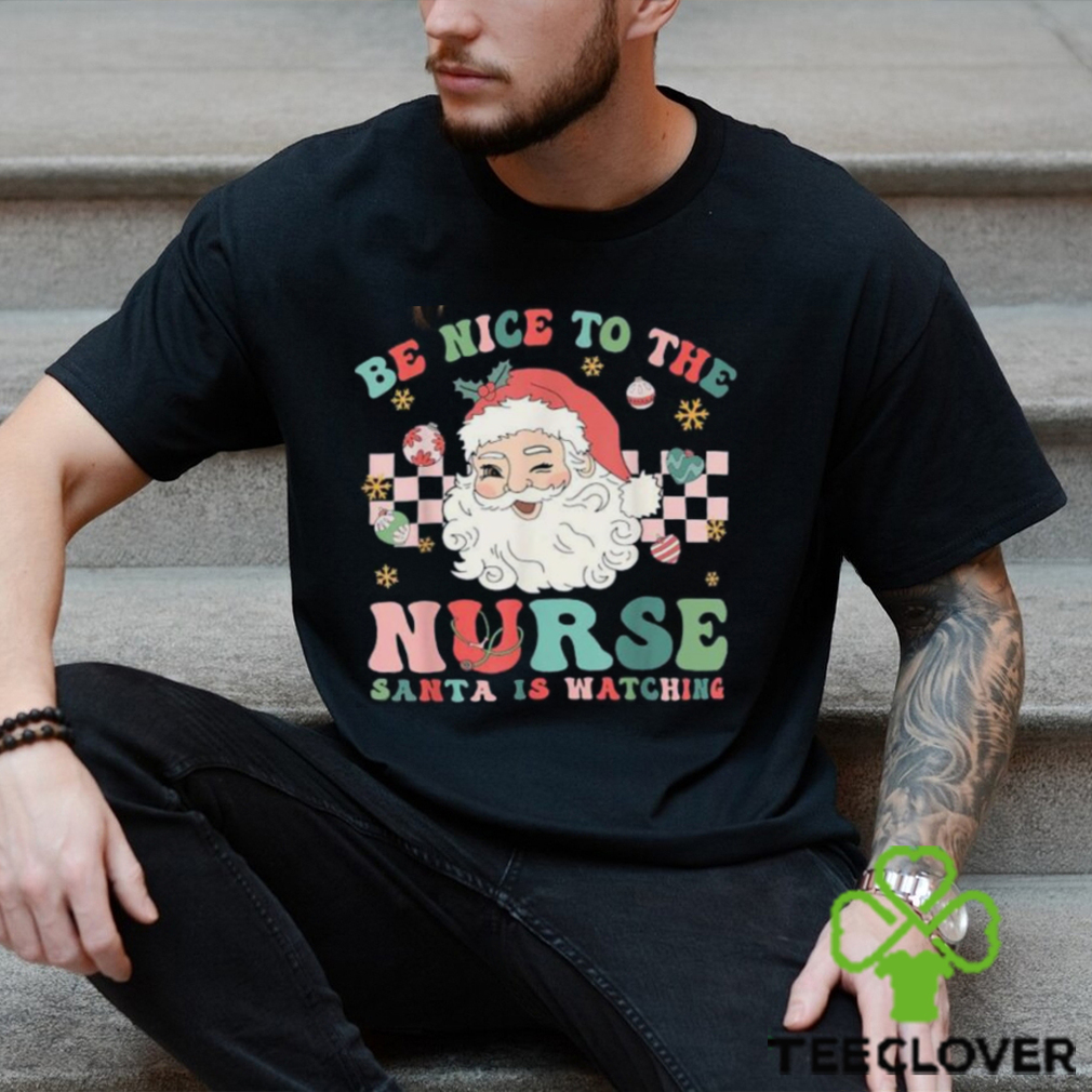 ()Nurse Christmas Be Nice To The Nurse Santa Is Watching T Shirt hoodie, tank top, sweater and long sleeve t-shirt