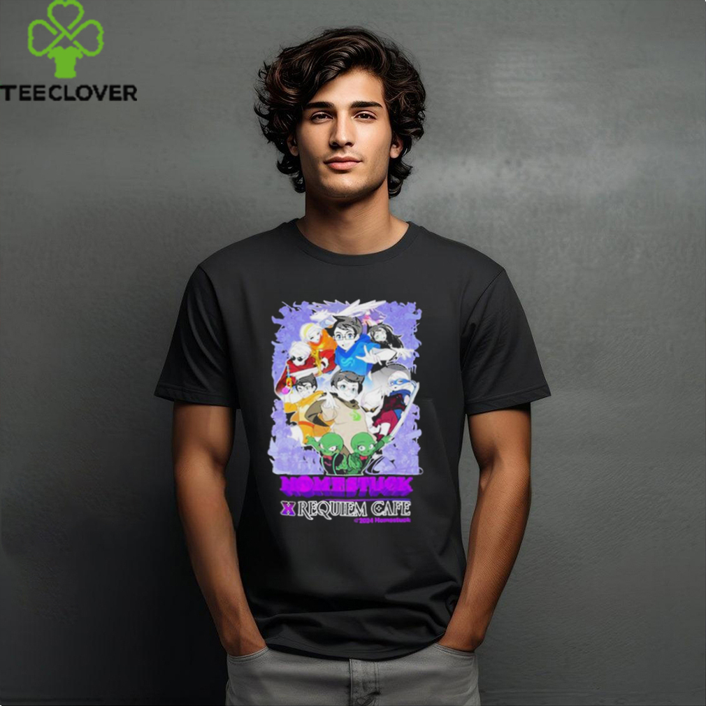 ()My funny story is when Santa put himself on the naughty list. I travelled the Official 2024 homestuck requiem cafe shirt home from work a few years ago, and I enjoyed all the Christmas lights and decorations every night. One house had a huge blow up Santa on top of the garage, with his arm raised, waving at you when the wind blew. One day I left work early, and it was still daylight. As I turned the corner on this windy day, I saw Santa was a bit deflated. He was slightly bent over and his arm had fallen down so that his hand was between his legs, and the wind was blowing a bit, and he was gently bobbing up and down, up and down, and he seemed to be enjoying himself entirely too much! I was crying with laughter, and I can never look at Santa again without flashbacks.