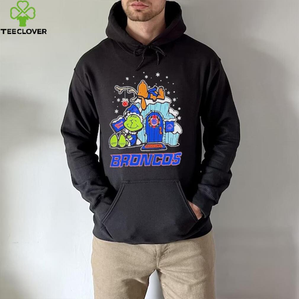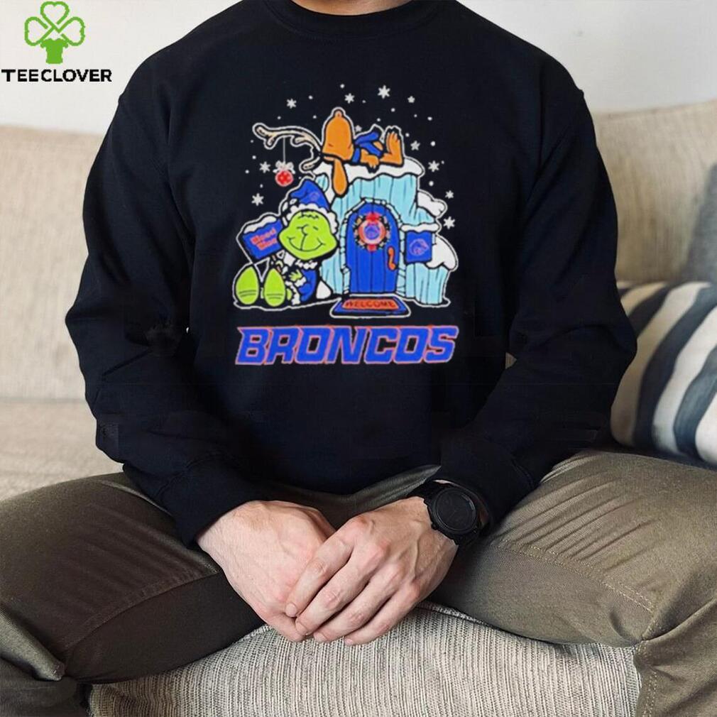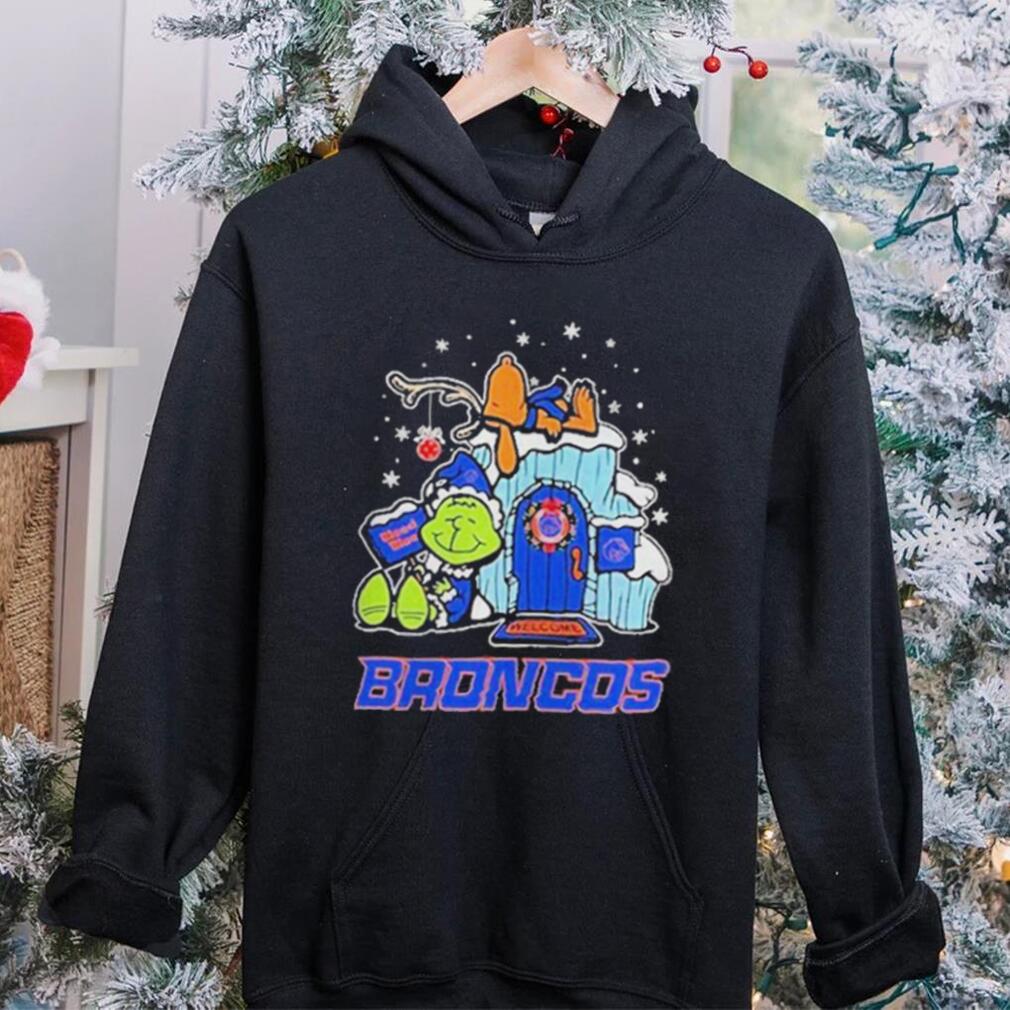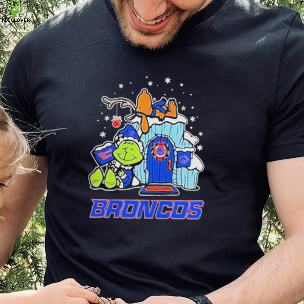 You can wear whatever you want, but remember: This is the office party. This is a Official boise State Broncos Grinch Nuts Welcome Christmas T Shirt of people with whom you work, so if you wouldn’t wear a revealing dress to work, don’t wear it to the office party. Also, don’t drink much you presumably know your limit, so stop well short of it. Because again—you work with these people. When I worked at TV Guide, senior staff regularly attended the Christmas parties, which (at least at the beginning) were lavish, usually held in off-site venues and allowed employees to bring spouses. You don’t want your boss’s boss asking who that was—the girl in the thigh-high bandage dress and hooker heels or the guy who threw up on the white-glitter sparkle Christmas tree. Women get the brunt of the judgmental post-party gossip about attire while men generally have to do something memorably bad, but I imagine a male manager showing up in gold lame hot pants would cause a stir in most business environments.