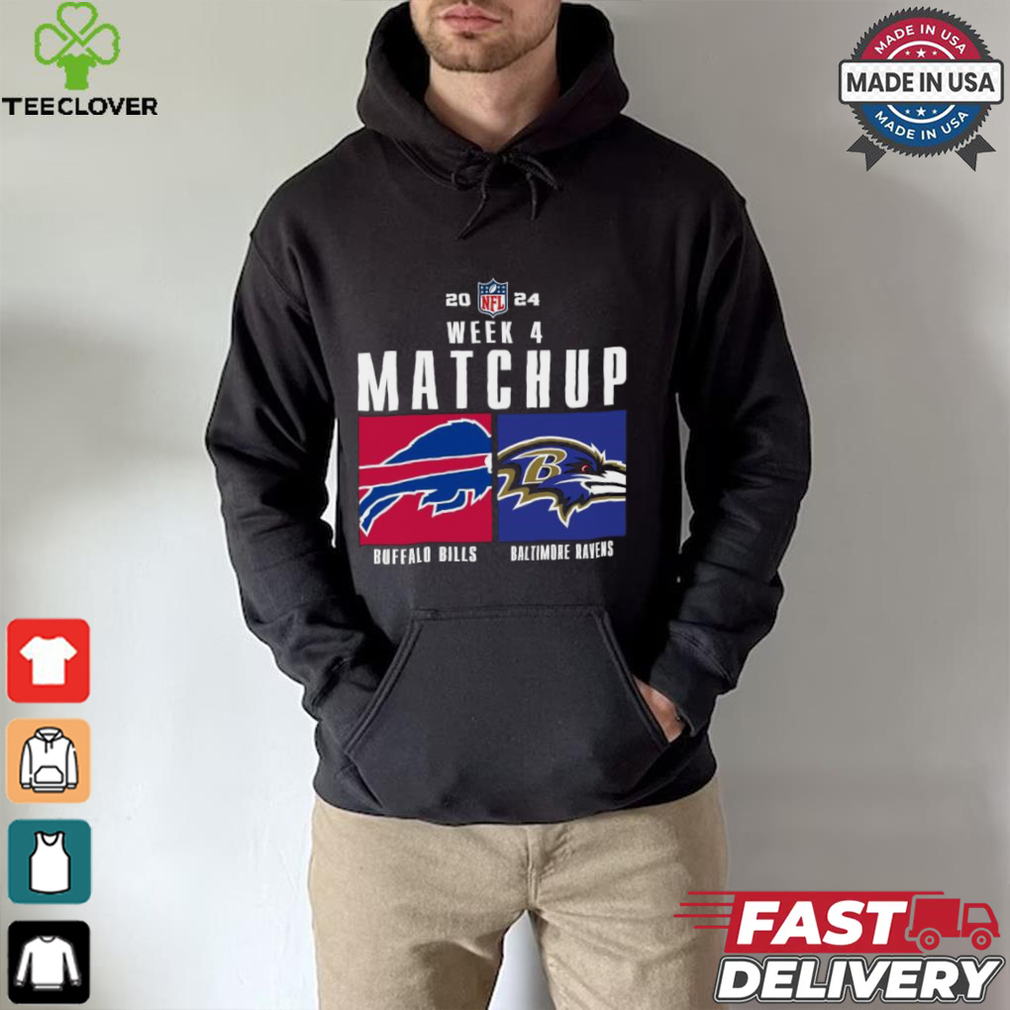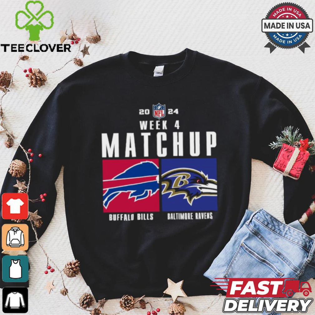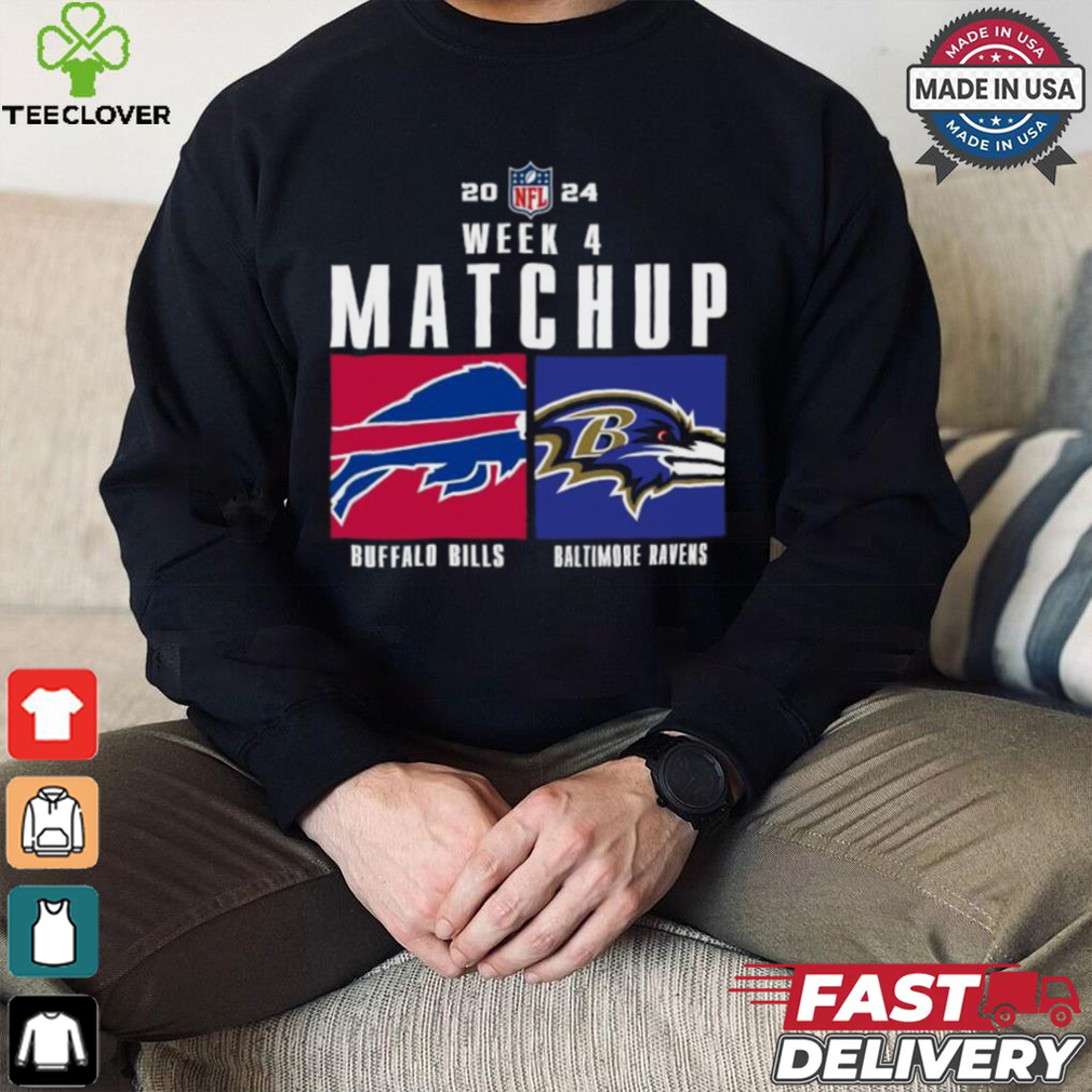 The easiest conversion would probably be to turn an offense or special teams player from a Official Buffalo Bills vs Baltimore Ravens 2024 NFL Week 4 Matchup T Shirt outside the line who runs with the ball into a non-kicking winger. Wingers are generally the fastest players in Rugby, they are usually positioned at the outside edge of the field, touch the ball least, but often have the most chance to make yards. NFL has some very good footwork coaching which would pay dividends there. English professional Rugby Union winger Christian Wade worked with an NFL footwork coach whilst still playing rugby and is now signed to the Atlanta Falcons in the NFL, he is expected to be used as a running back on the punt return special team if he makes it through to the match day squad.