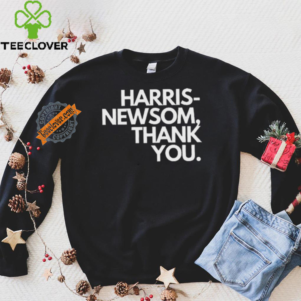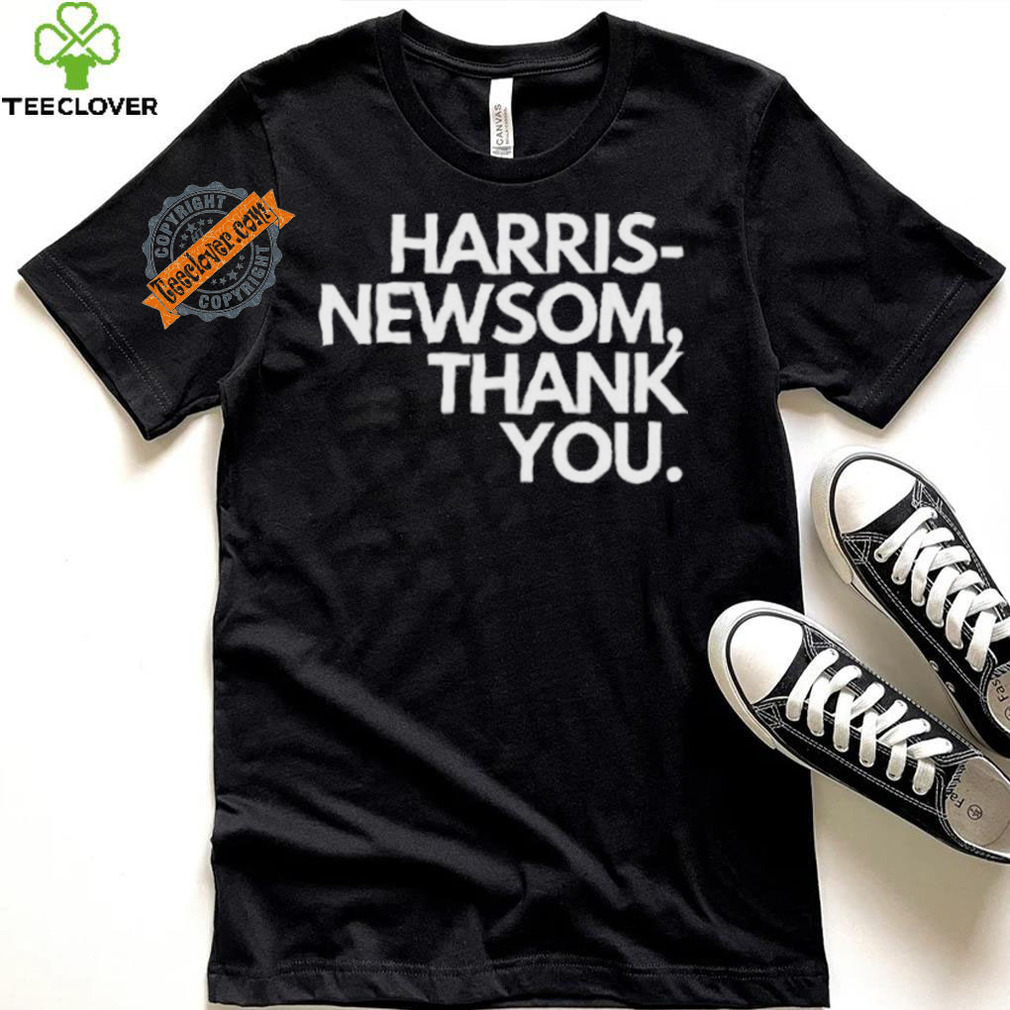 Simply look at Steve Jobs, the guy who ran Apple so well. He was a Official Callmeshivy Harris Newsom Thank You Shirt believer in “natural” medicine, in fact he wouldn’t bathe since he felt this somehow or other weakened him but his fellow workers had lots of problems with this. He developed Pancreatic Cancer nothing may have done him any good but from the little that I’ve found on his case he may have had a rare case, like Ruth Bader Ginsberg, where prompt surgery may have saved him. He wanted to try some “natural treatments” first, he did, and you know how that turned out. Just because you know a lot about a lot of things don not assume that you know everything about everything. He was in many ways a brilliant man in most areas but not in the treatment of pancreatic cancer. The worst part is he got a liver transplant later on when he decided to try regular medicine, something that might have saved someone who really needed it. So sad.