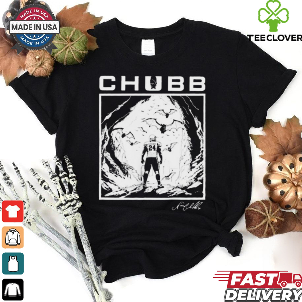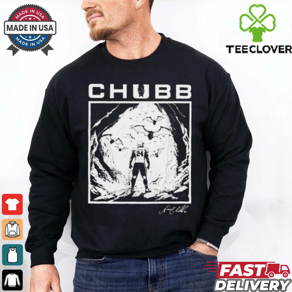 For big nipples I think paded or tshirt bra are the best Official Cleveland Chubb Bat Nick Chubb Cleveland Browns NFL Signature t shirt to hide nipple impression over the top. It also depends on ur menstrual cycle as ur breasts got lumpy and nipples gets harder during periods. Also chill wind and many other sensations makes nipples harder which makes them visible protruding out.I think bra itself is made to support breasts and hide nipple impressions over the tshirt or tops! There are many types of bras to hide nipples but it depends on what you are wearing on top of bra.