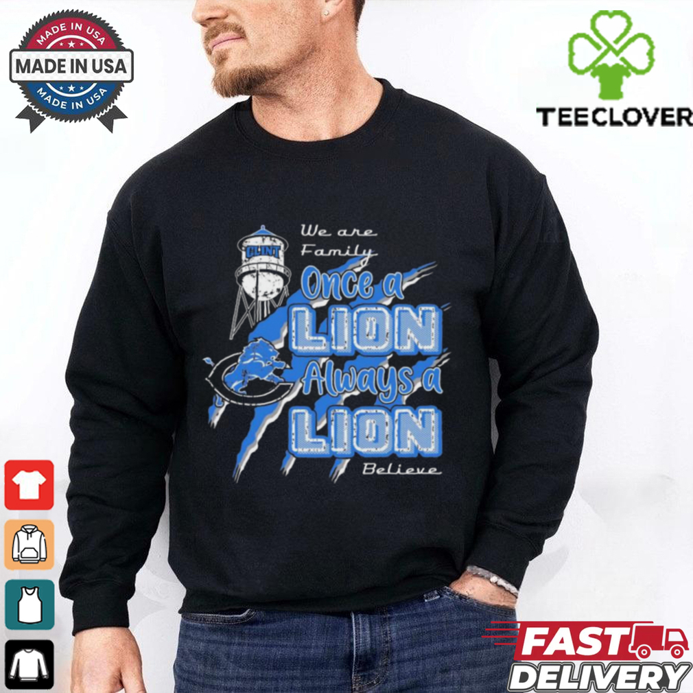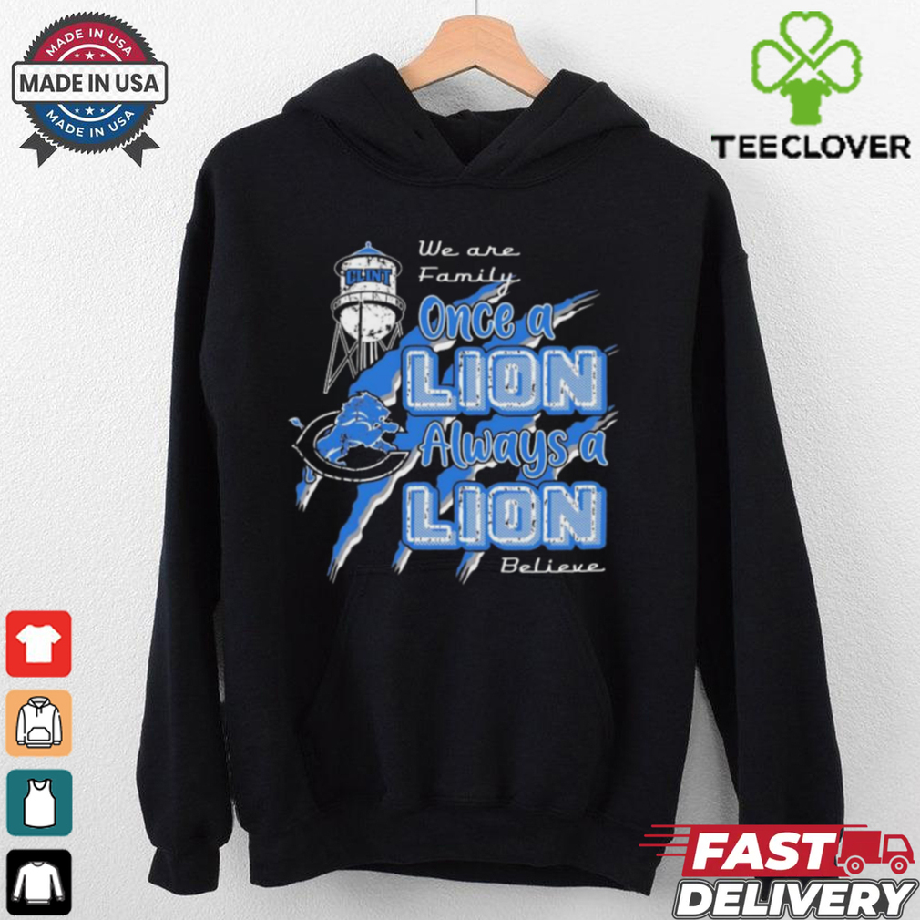 ()Official Clint We are family once a lion always a lion believe Detroit Lions vs. Chicago Bears NFL t shirt hoodie, tank top, sweater and long sleeve t-shirt: best style for you