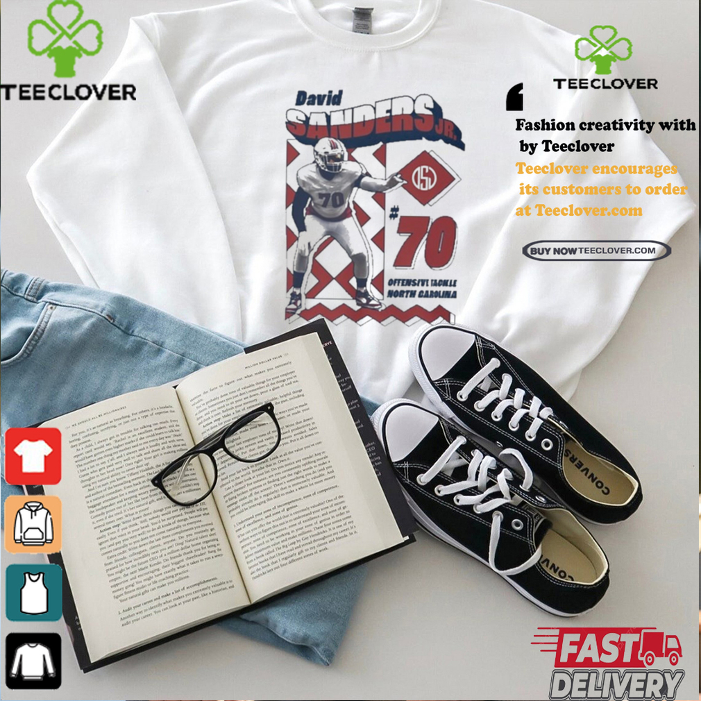 Believe in yourself! Have faith in your Official David Sanders Jr. Offensive Tackle North Carolina Retro Shirt !- Without a humble but reasonable confidence in your own powers you cannot be successful or happy.Believe in yourself through tough times. Believe in your capacity to succeed. Believe that your relationships are worth the effort. Believe in your intuition, especially when you have to choose between two good paths. Believe that it’s all worth your while and after all we have a great thing within us- HOPE and as said by Mr. Dufrensey- Hope is a good thing infact best of the things and no good thing ever dies.