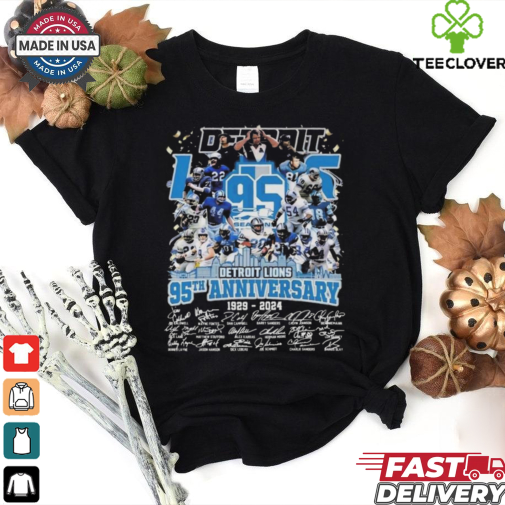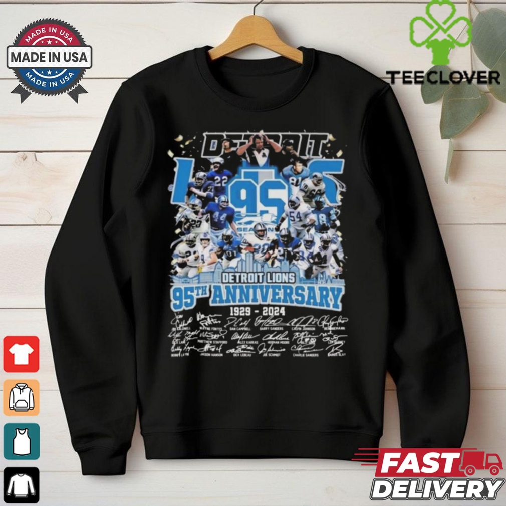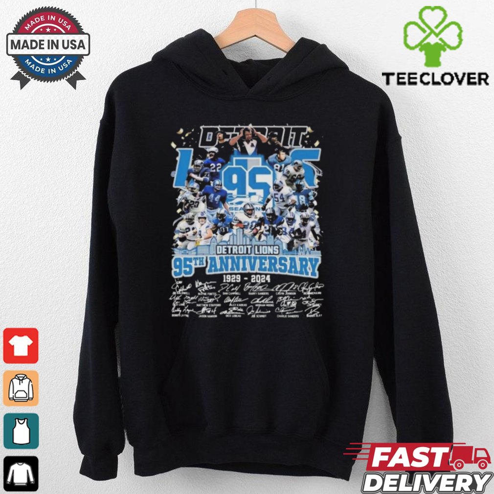 ()Official Detroit Lions 95th Anniversary 1929 2024 Thank You Signatures Shirt hoodie, tank top, sweater and long sleeve t-shirt: best style for you