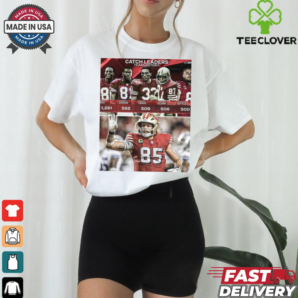 ()Official George Kittle Keeps Making 49ers’ History Catch Leaders Team History Poster t shirt hoodie, tank top, sweater and long sleeve t-shirt: best style for you