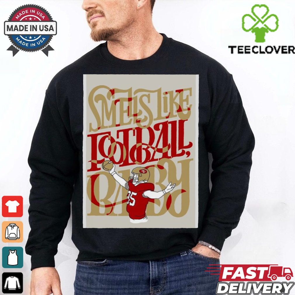 ()Official George Kittle San Francisco 49ers Tight End Smells Like Football Baby Poster t shirt hoodie, tank top, sweater and long sleeve t-shirt: best style for you