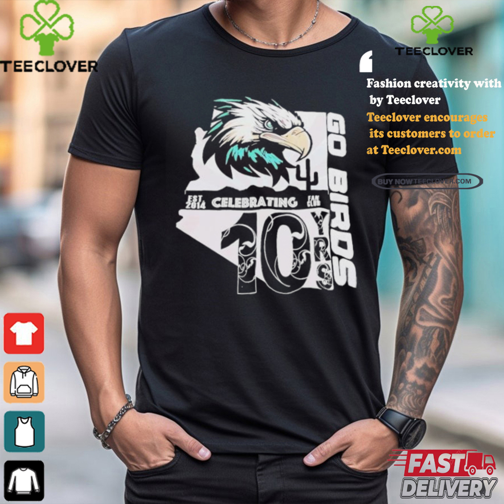 ()Official Go birds philadelphia eagles celebrating 10 years fan club 2014 2024 T shirt