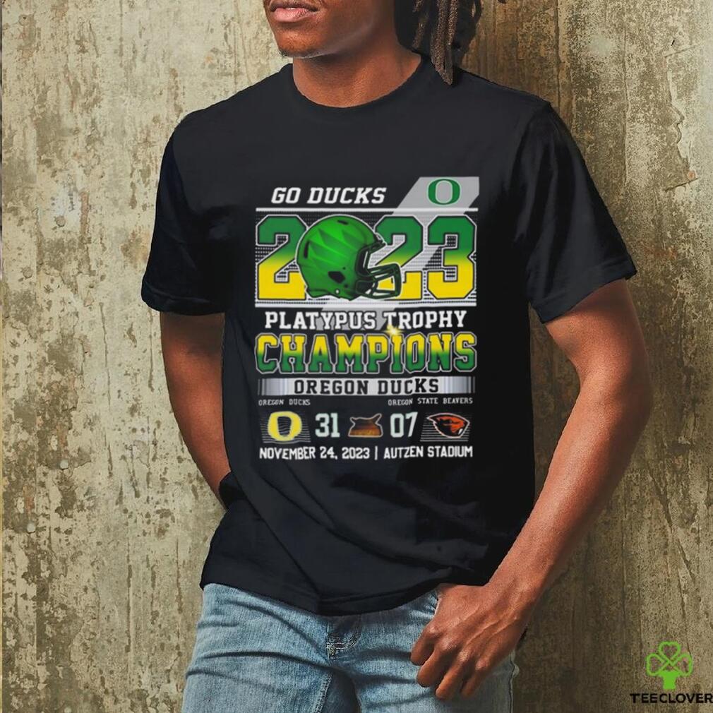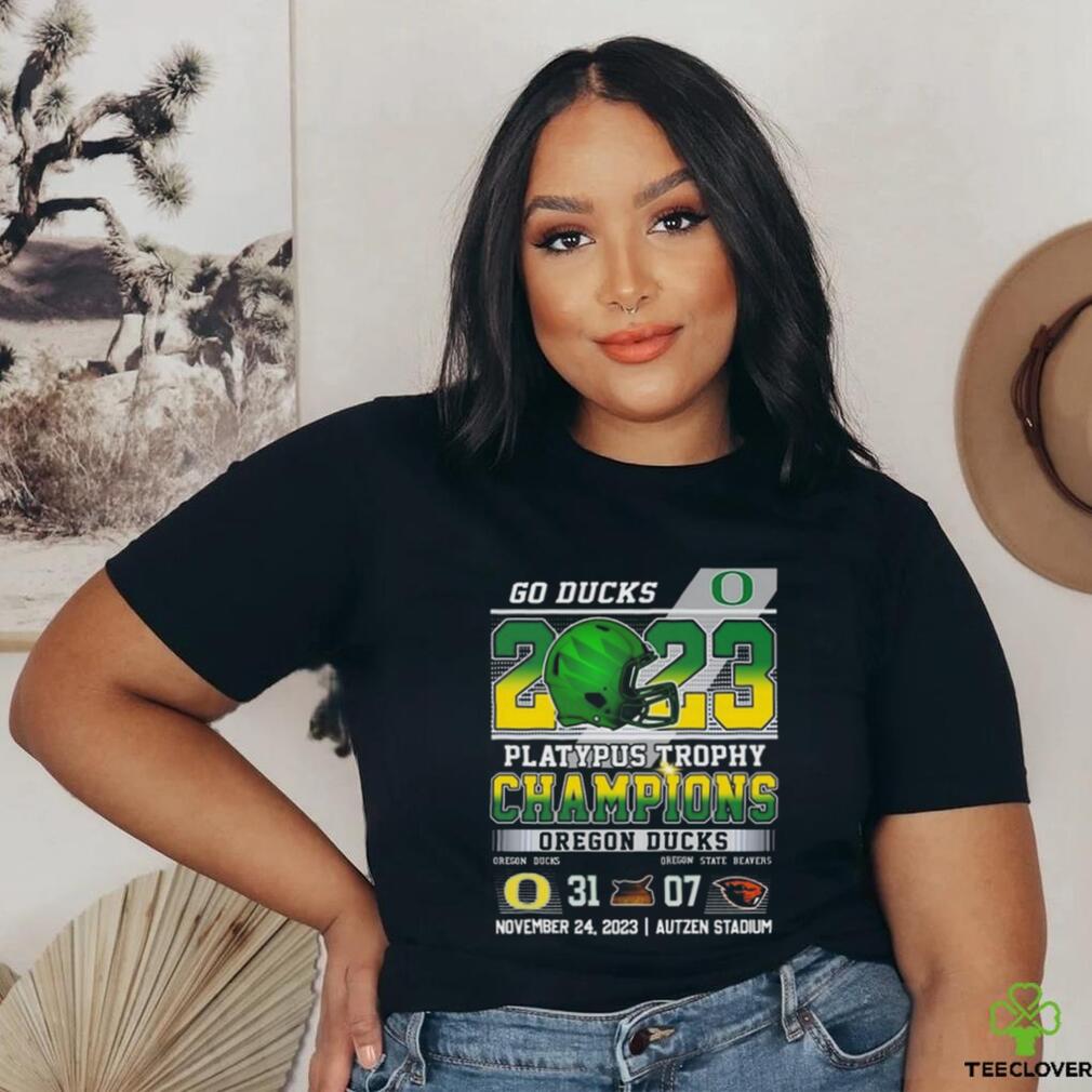 Best Official Go Ducks 2023 Platypus Trophy Champions Oregon Ducks 31 – 07 Oregon State Beavers November 24, 2023 Autzen Stadium T Shirt