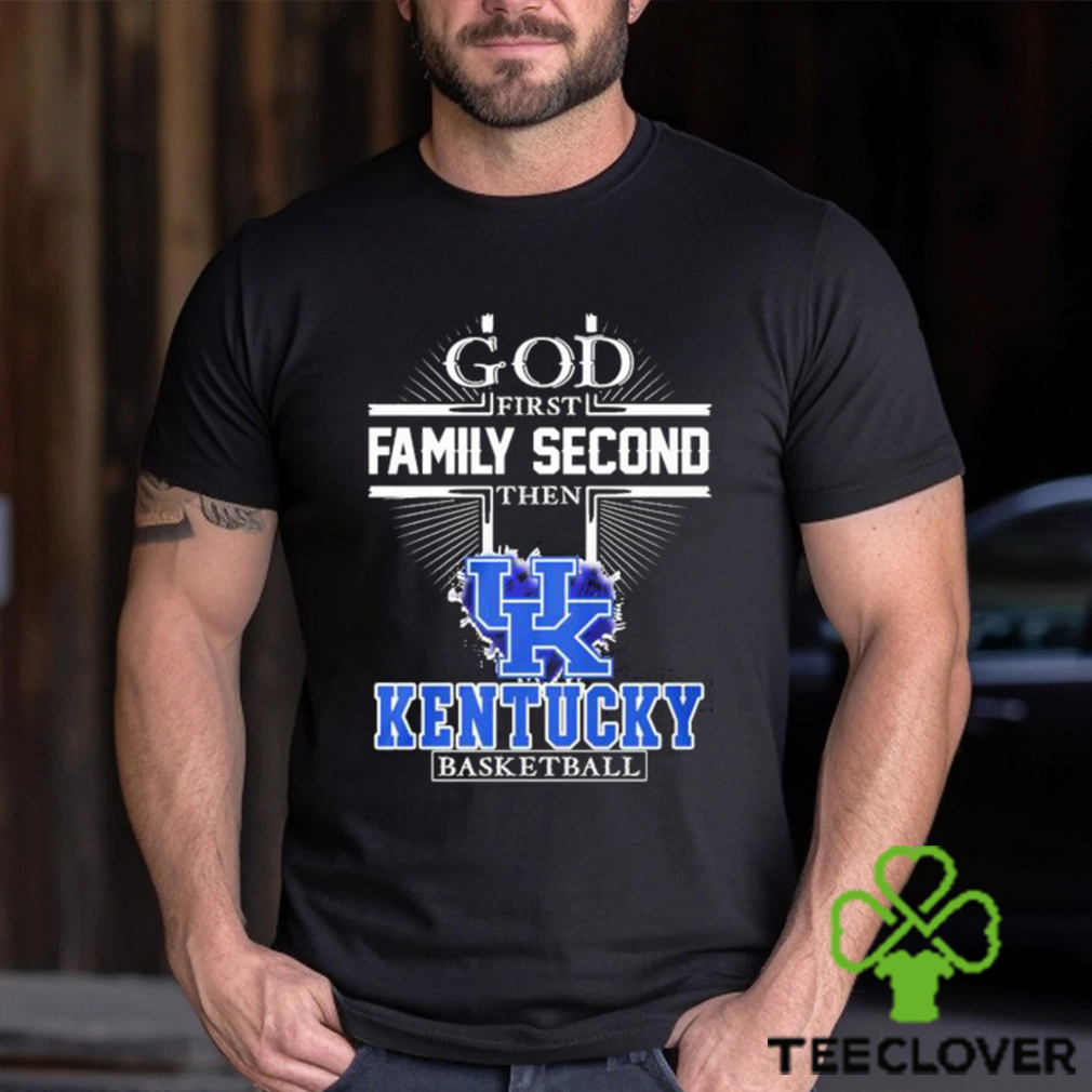 December is the cold rainy season in this part of the Official God first Family second then Kentucky Wildcats basketball heart 2023 shirt . Shepherds would not have been in the field with their flocks. The sheep are all under Winter cover at this time of the year. There is no grass growing in the fields for sheep to eat. Travel in Winter time by foot or animal in those times was very hazardous. The weather makes travel extremely difficult and dangerous. As such, the decree that all travel to their home city to register for the tax would have gone out in mid-Summer at the very latest to give everyone a chance to travel to and back from their home city in relative safety and comfort. The innkeeper offered Mary and Joseph shelter in the barn. He would not have offered this to a soon to deliver pregnant woman if the animals were now in the barn and out of the weather. The barn would have been unsanitary, cold, noisy and impossible to get any rest. Not a fit place for a woman to give birth.