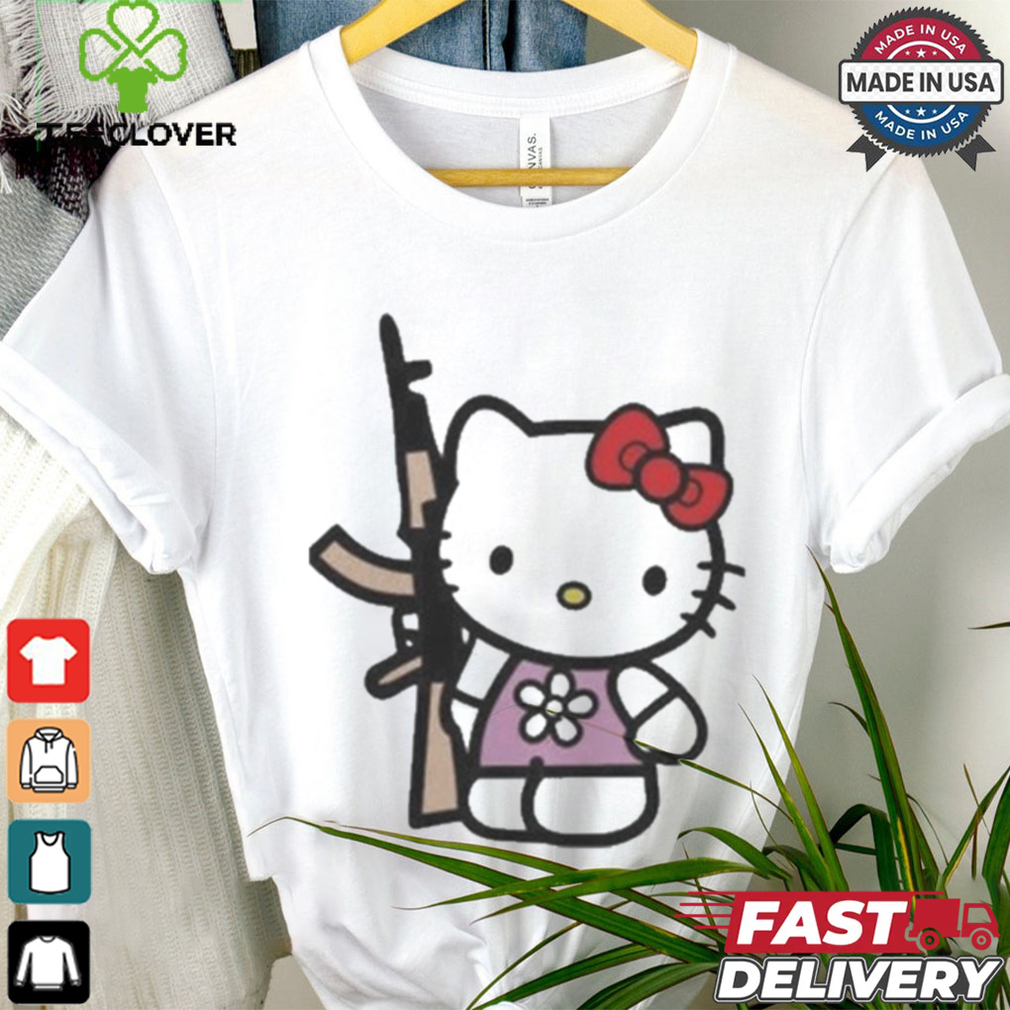 Christmas decorations are a Official Hello Kitty With Gun AK 47 T Shirt affectation. Whether one puts them up or doesn’t put them up, whether one leaves them up or takes them down, whether they are put up in January or any other time before December, has no impact on the superstition defined as luck. Good luck and bad luck are merely characterizations of serendipitous occurrences that are random in nature but which leave us either going hooray (good luck) or lamenting the vagaries of uncaring nature (bad luck). But worrying about or praying about or hoping for either as the case may be, like astrology for example, is simply superstitious dreck. As a native yo the city I must say there are three a places that I would suggest to visitors to really get the best holiday scene amd spirit. My first pick is going to be Westfield Mall’s extended outdoor shopping area Union Square. Located at the corner of Powell and Geary in the heart of downtown San Francisco the Christmas spirit is reminiscent of the movie โA Miracle on 24th Streetโ. That is minus the snow.