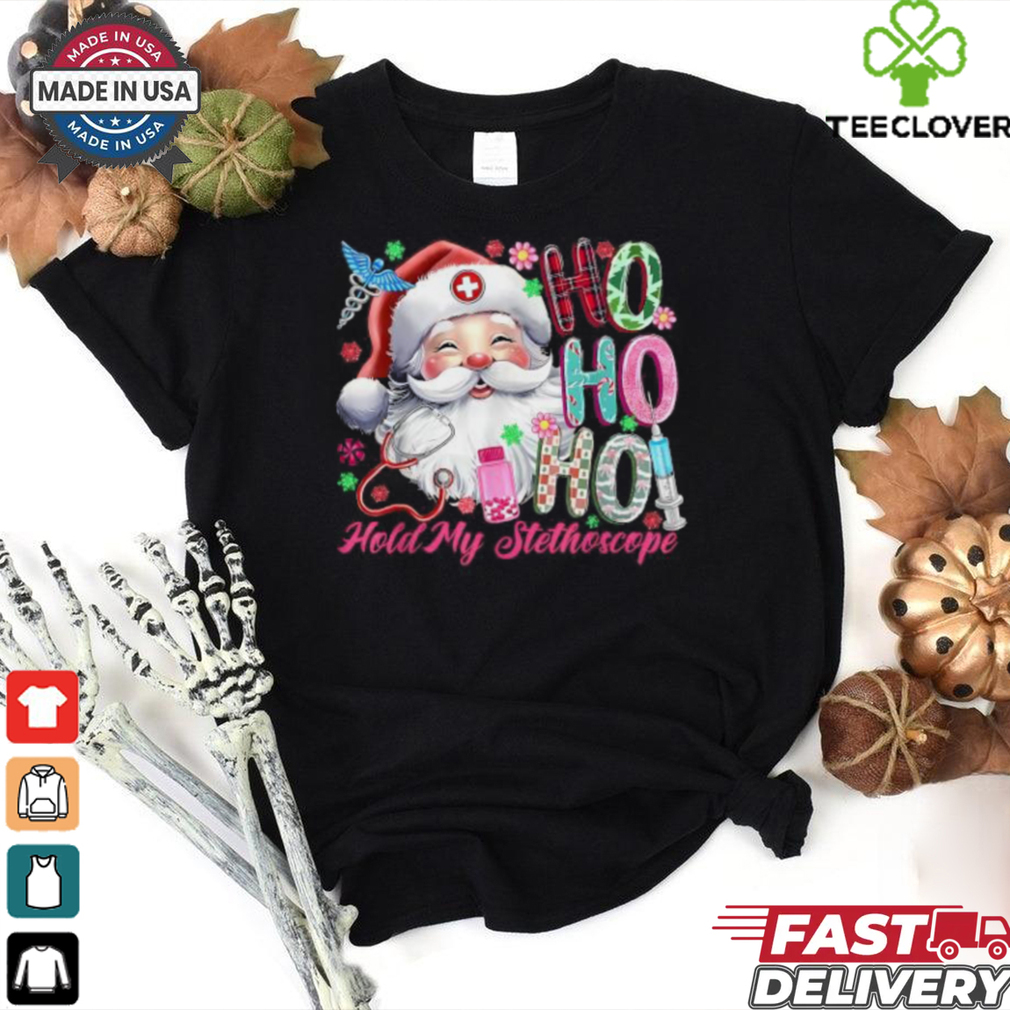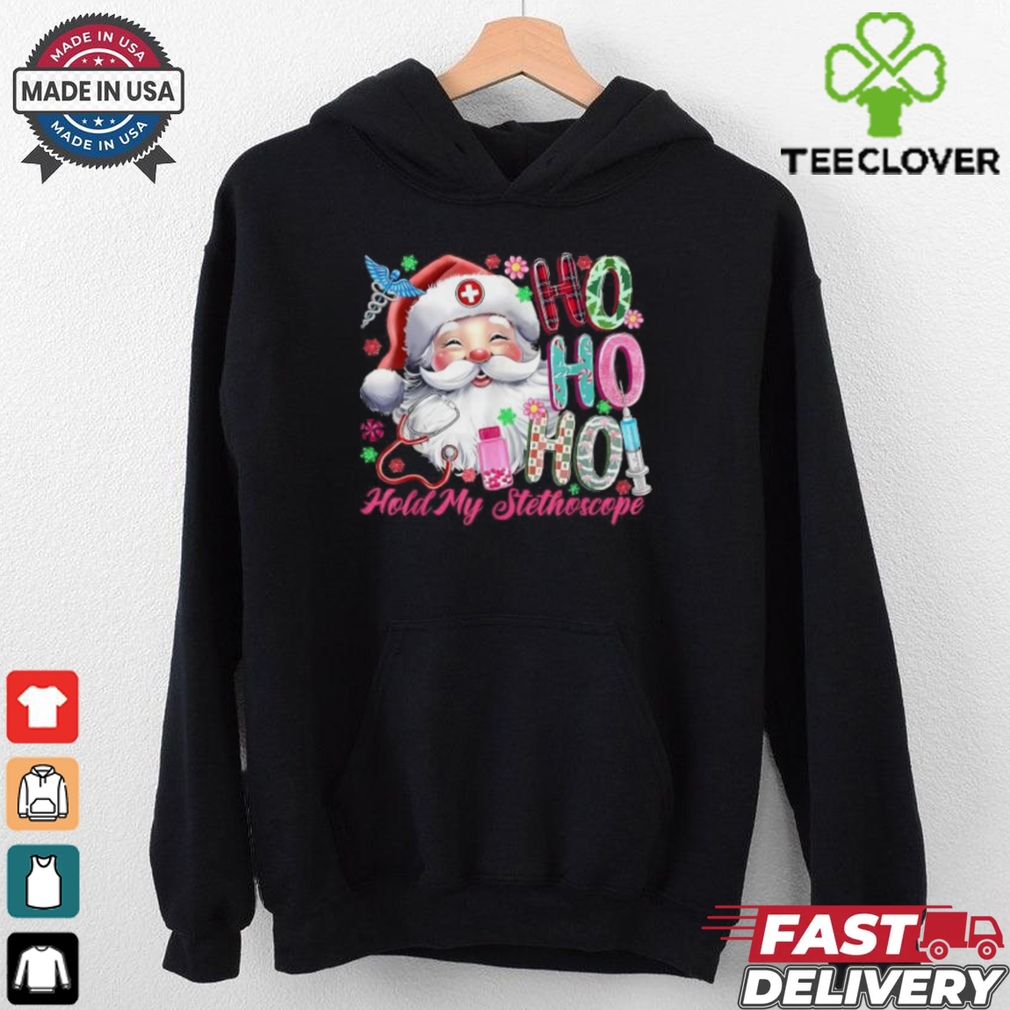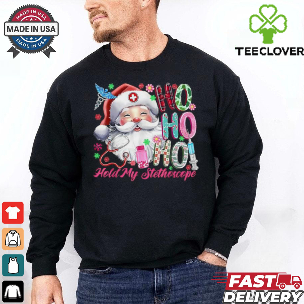 ()Official Ho ho hold my stethoscope Christmas nurse santa claus 2024 T shirt hoodie, tank top, sweater and long sleeve t-shirt: best style for you