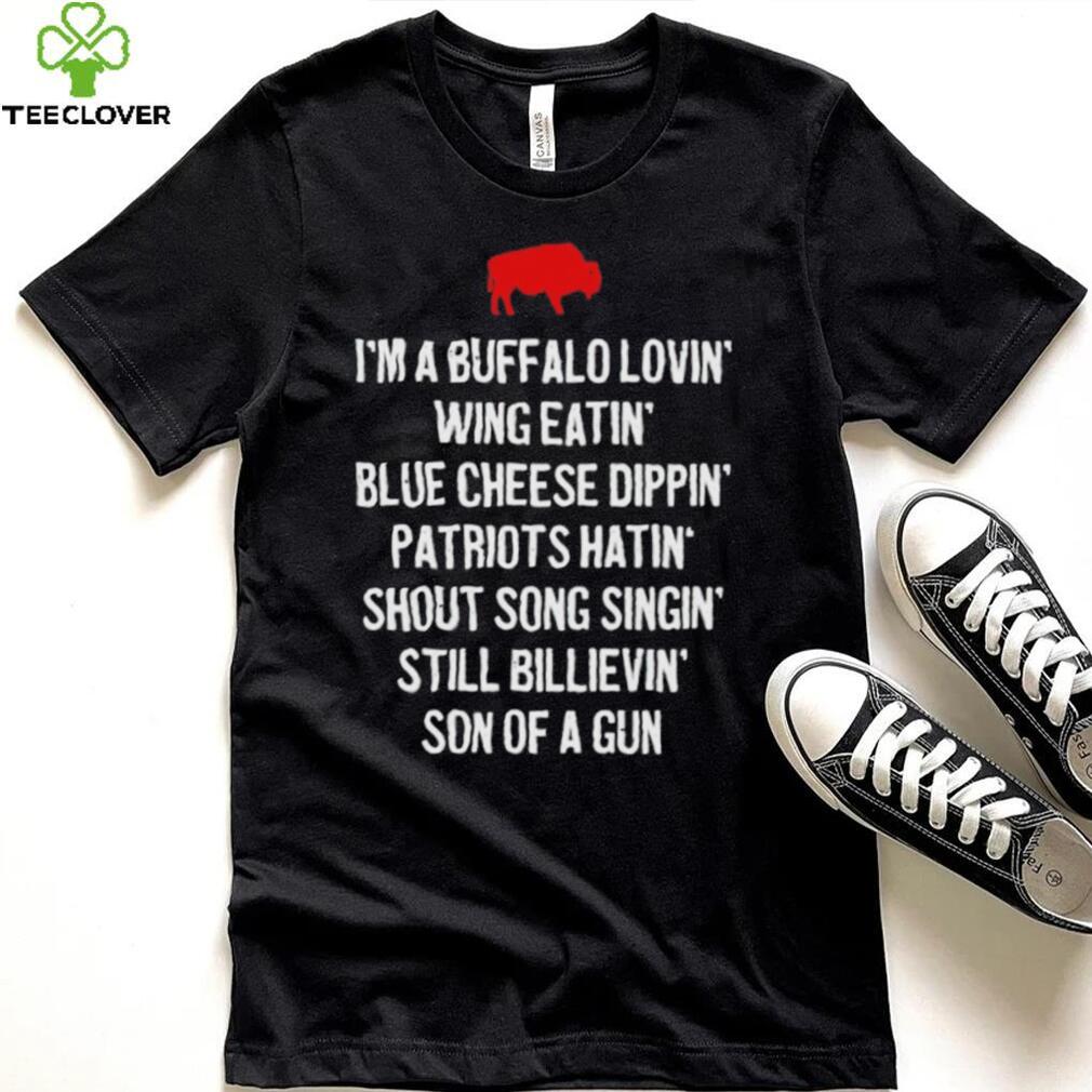 Official i’m a Buffalo lovin’ wing eatin’ blue chesse dippin’ patriots hatin’ shout song singin’ still bilievin’ son of a gun shirt