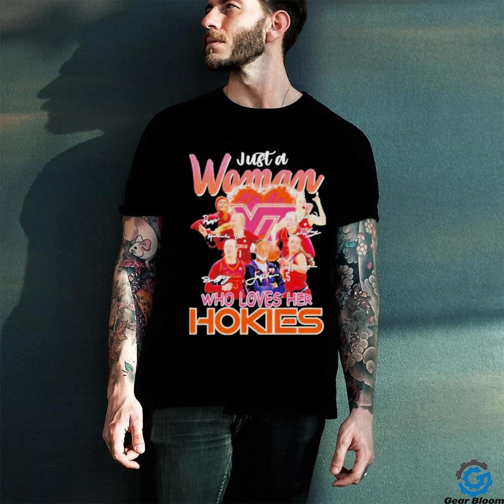 ()Official Just A Woman Who Loves Her Hokies Signatures T Shirt, Hoodie, Sweater, Vneck, Unisex and T-shirt