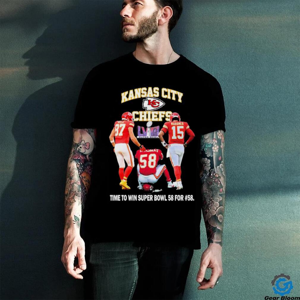 Official Kansas City Chiefs Kelce Thomas and Mahomes time to win Super Bowl 58 For #58 shirt0