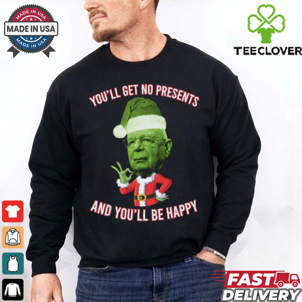 ()Official Klaus Schwab You’ll Get No Christmas Presents And You’ll Be Happy 2024 Shirt hoodie, tank top, sweater and long sleeve t-shirt: best style for you