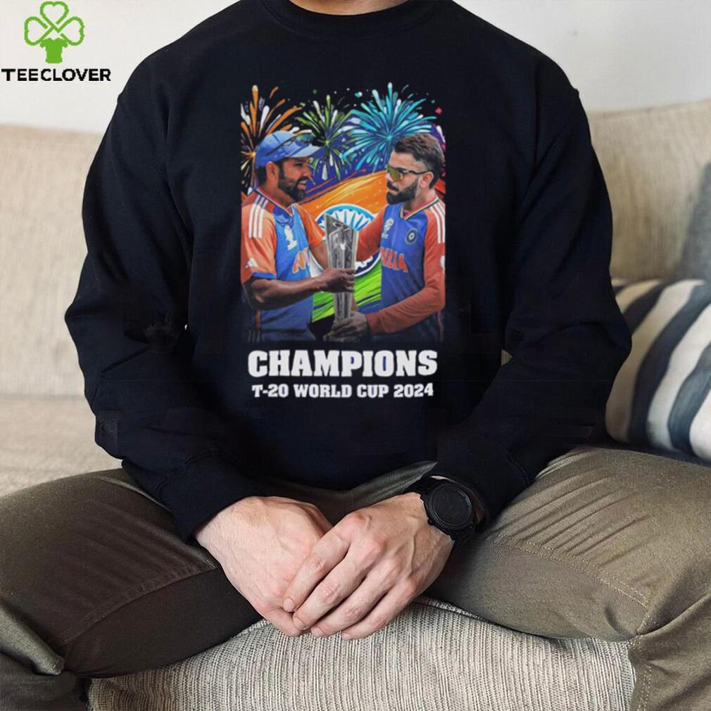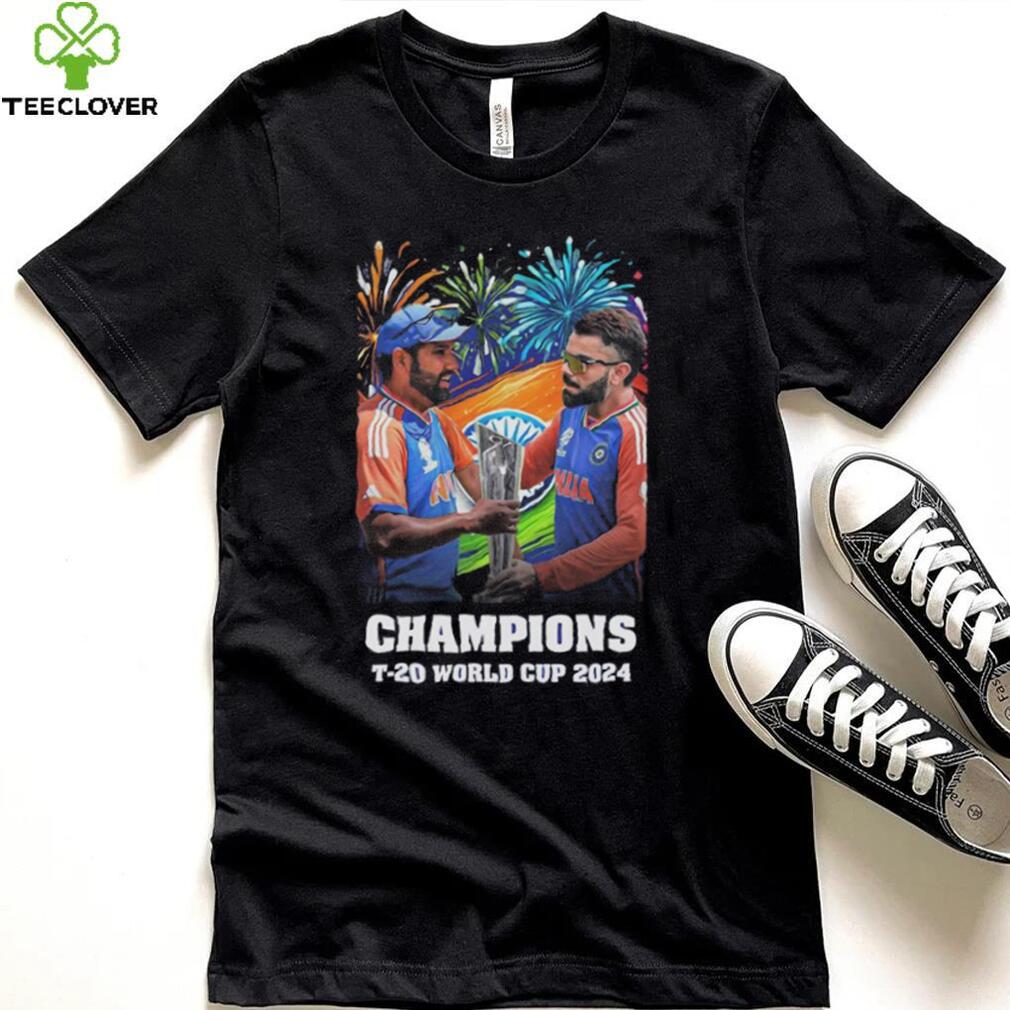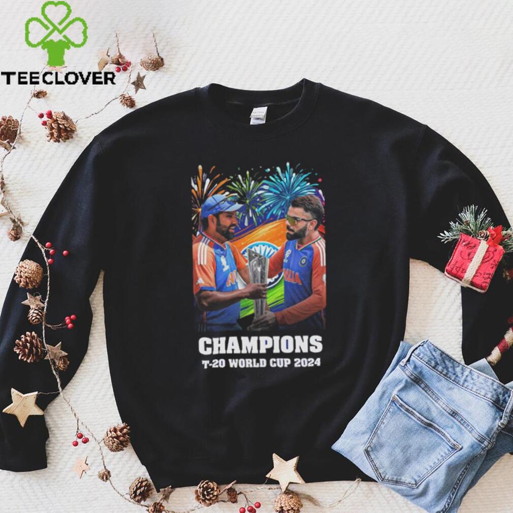 ()Official Kohli and Sharma India T 20 World Cup 2024 Champions shirt