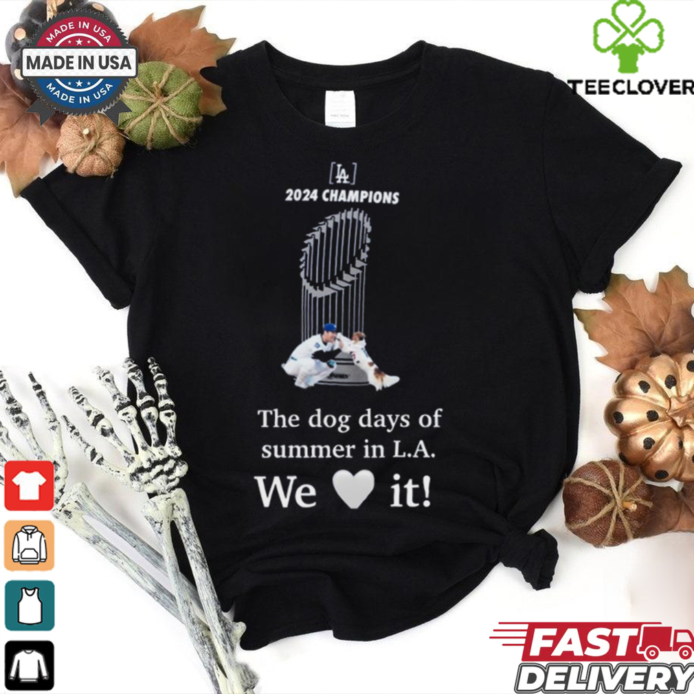 As for the guards, well, they got a report from a whole lot of Official Los Angeles Dodgers Shohei Ohtani, Decoy MLB 2024 Champions The dog days of summer in L.A. We Love It t shirt about some guy who ran in and opened up their curtains which is why there was so much screaming. And unfortunately up to that point, there was no one who stated that the screaming started BEFORE I ran in there. So by the time the cops took me away, I saw that all the bags were gone and I was screwed.