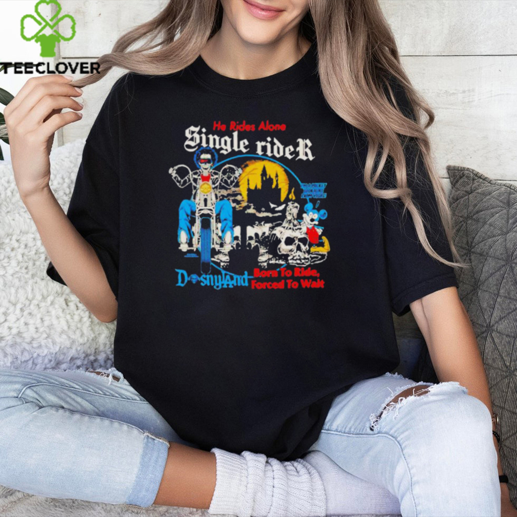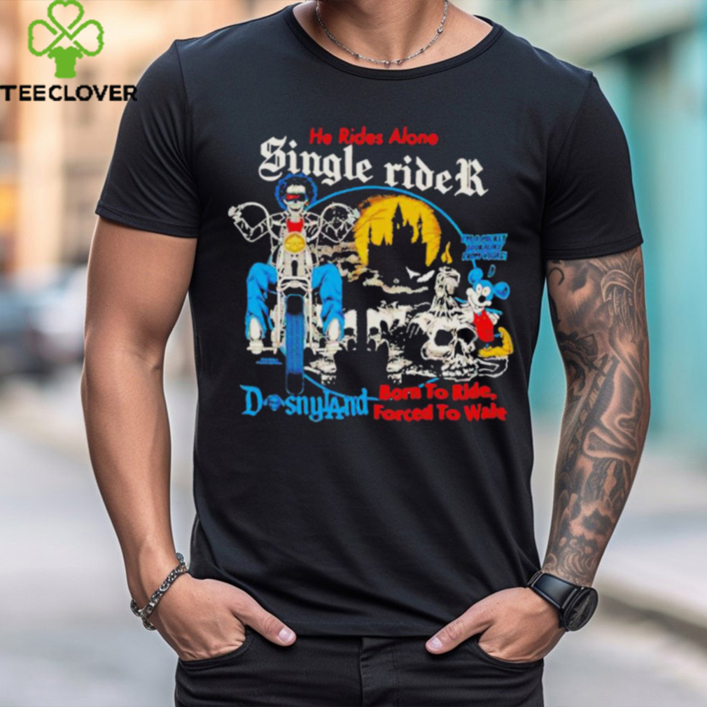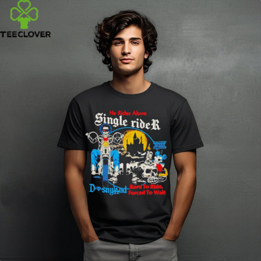 Official Men’s he rides alone single rider disneyland born to ride forced to wait shirt