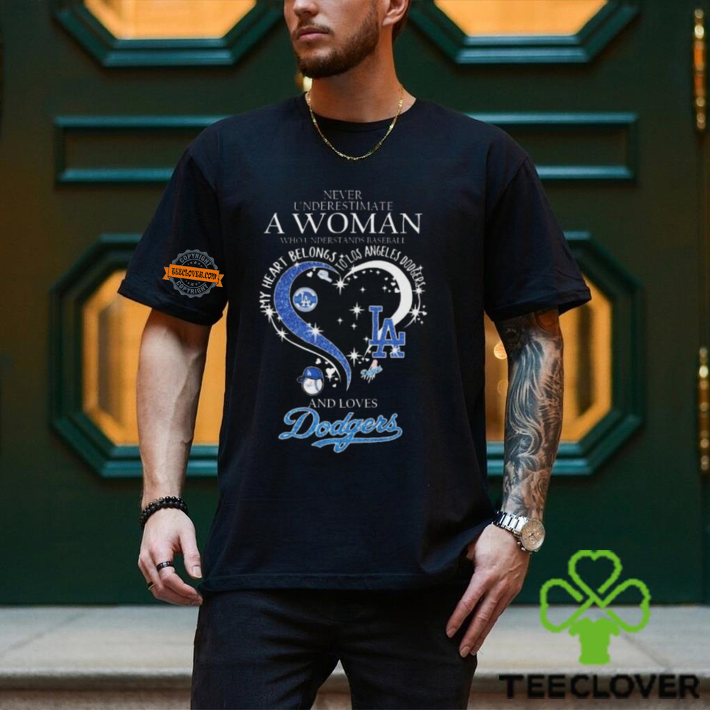 ()Official Never Underestimate A Woman Who Understands Baseball Heart Diamond And Loves Los Angeles Dodgers 2024 shirt hoodie, tank top, sweater and long sleeve t-shirt