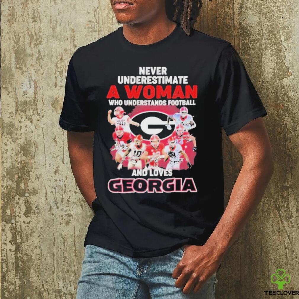 ()Official Never Underestimate A Woman Who Understands Football And Loves Georgia College Football Signatures Christmas T Shirt. Categories of this T-shirt is teejeep, Official Never Underestimate A Woman Who Understands Football And Loves Georgia College Football Signatures Christmas T Shirt from Dadyshirt β Unique designs β Large assortment β Comfortable β High-quality β Easy to care for β Available in a range of colours and styles for men, women β Shop now β
