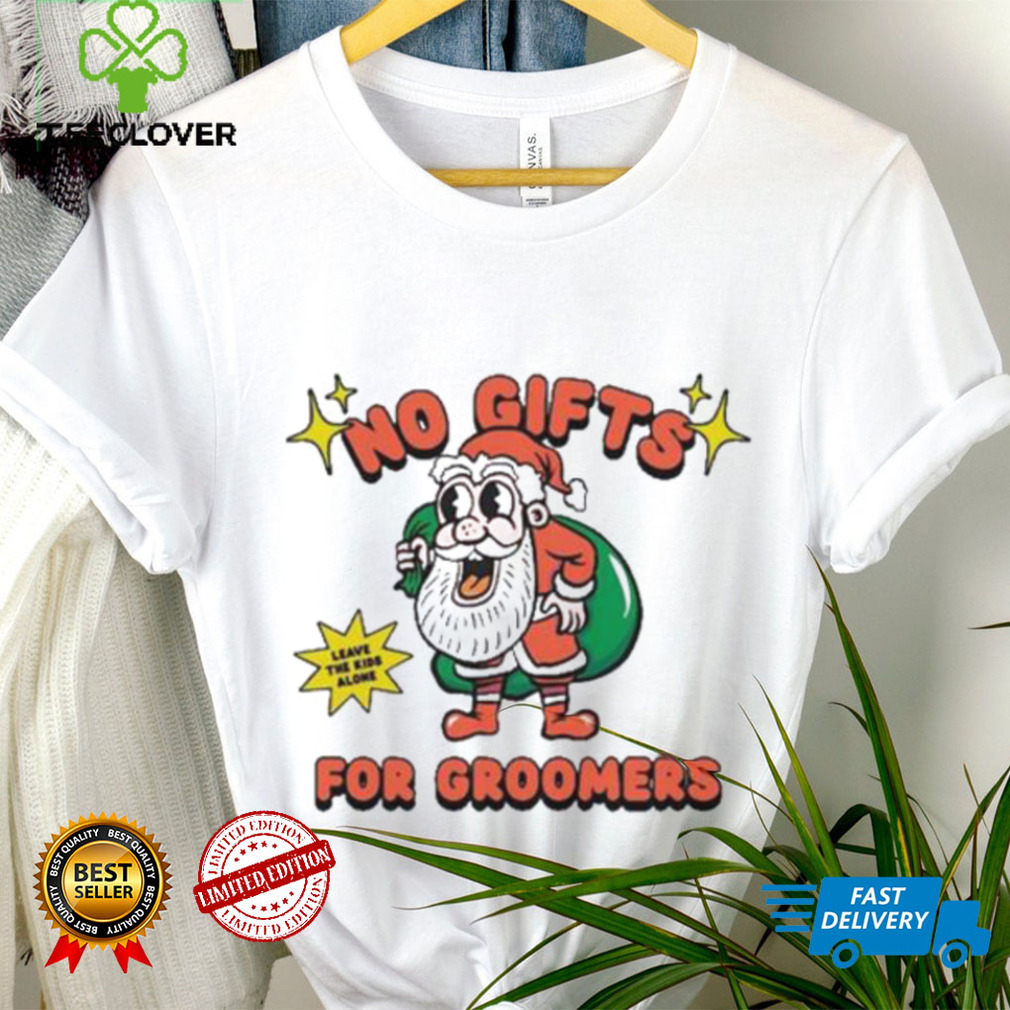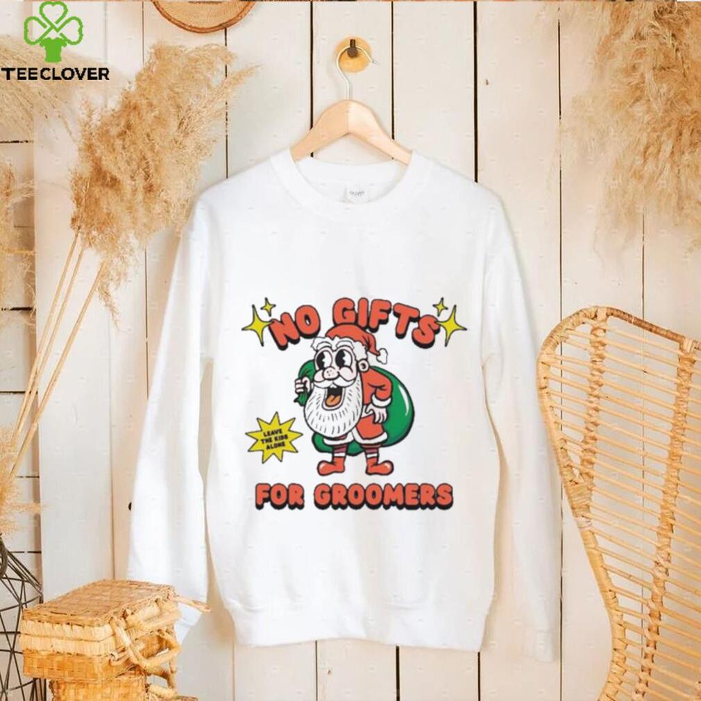 I’m just saying, you scuttle your defense purposely, because it’s the same mistakes over and over. You constantly overpay for offensive talent, and that’s not how you build a Official no Gifts For Groomers Christmas Leave The Kids Alone T Shirts. Is it my opinion? No it’s Belichick’s opinion. Go study Belichicks’ teams, there ain’t no first round pick wide receiver, in fact he’s never drafted one. There ain’t no $10MM a year running back. Falcon fans want to believe their starting quarterback who can’t drop back five steps is amazing, ask yourself this: why is there so much offensive talent around him? It doesn’t cross your mind if he’s that good it’d be better to have more talent on defense? No, because you’re not very knowledgeable are you. And thusly, you keep having mediocre seasons. Last year the team was 3rd in the division. This season, flat out horrible, finished 7–9 and probably should have fired the head coach for losing out on a high pick. A brutish untalented defense because once again the offense is loaded. I’m telling you, next season this team is skydiving at 5–11.