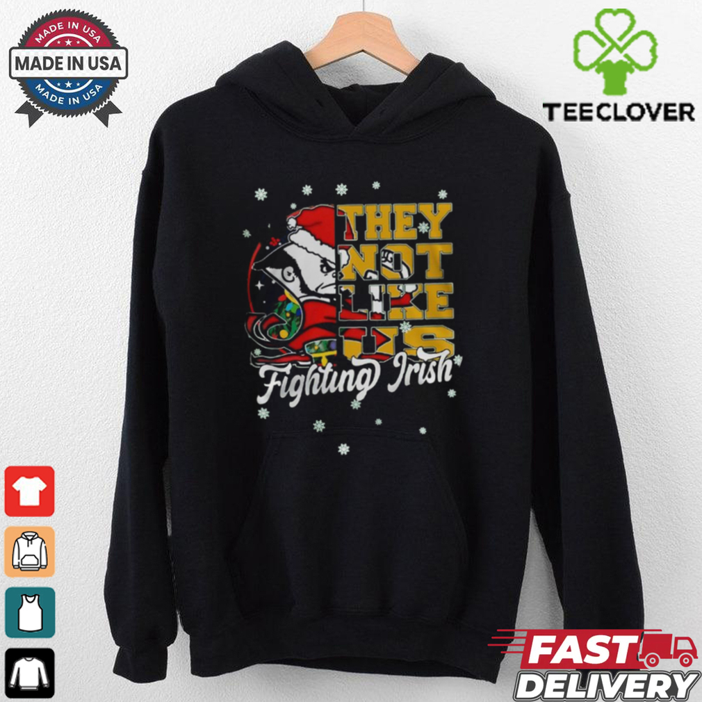 ()Official Notre Dame Fighting Irish Christmas 2024 They Not Like Us Mascot Shirt hoodie, tank top, sweater and long sleeve t-shirt: best style for you