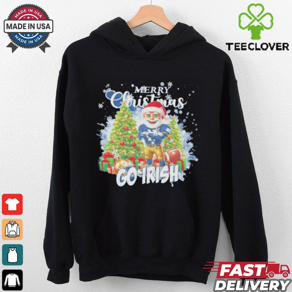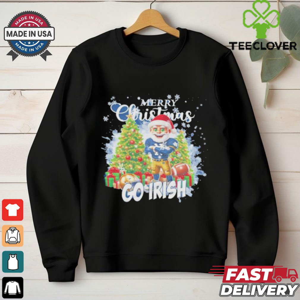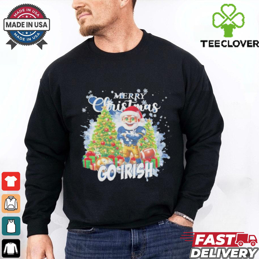 You really need to do your research before Official Notre Dame Fighting Irish Mascot Merry Christmas Go Irish Sweatshirt now days. Unfortunately many brands push poor quality products because of the name stamped on it. Check wheres its made first, then the materials used. If youβre interested in a good quality curated.Nowadays, more and more people shop online, especially for girls. Cosmetics, bags, clothes, etc. are all available online. You can choose what you like without going out.