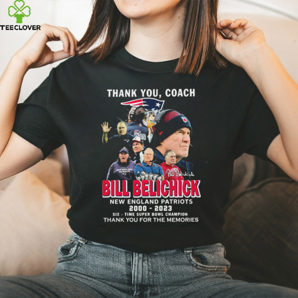 Only three of the 2957 Plymouth dealers in 1999 were not also Chrysler dealers, so very few dealers were impacted by the decision to streamline the Official official Bill Belichick New England Patriots Thank You, Coach 2000 2023 Signature Shirt. And many of these 2957 also sold Dodge, so they could easily show the Dodge versions to interested buyers who did not want the Chrysler trim levels. When Mercedes evaluated Chrysler after the acquisition in 1998, the Plymouth brand was a logical sacrifice to save money and give the remaining brands unique attraction. Unit sales had been low for over a decade, less than half the equivalent Dodge model volumes, and the corporate executives calculated some level of network efficiencies to be had from canceling the Plymouth brand and streamlining the portfolios. After a year of internal discussions, the decision to end Plymouth was announced in November 1999. The last Plymouth brand Neon vehicles were produced in June 2001. The remaining brands had distinctive positions: Dodge (standard, performance), Jeep (SUV, fun), Chrysler (American luxury), and Mercedes (specialized European luxury), plus the super-luxury Maybach brand.