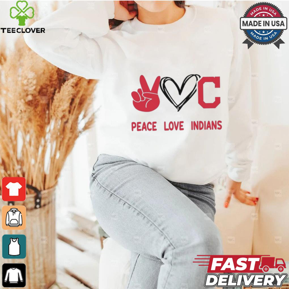 Judging from what I saw during Halloween and Thanksgiving, I would say the Official Peace Love Cleveland Indians MLB 2024 Shirt, cozy and nesting look is in. Stuff that gives off that homespun look. Think late 1960βs all the way up to the 1970βs. I donβt know if you remember the Carter era but I think thatβs going to be during this season and the next. Inflation was high, gas prices went through the roof, hamburgers were so expensive, people werenβt used to prices being so high. So people stayed at home more, and I think thatβs what is going to happen. They will be baking and cooking more at home as opposed to going out and running a big tab. But you asked about the decorations, and I will try to answer your question. Homemade, homespun, cozy and homey. I think thatβs going to be the trend, this year. People don βt have the money for the glitz or all the bells and whistle this holiday season. No over the top, no putting on the dog, so to speak or no needless spending. If you can make it, thatβs great and there is a ton tutorials on Youtube to show you how.