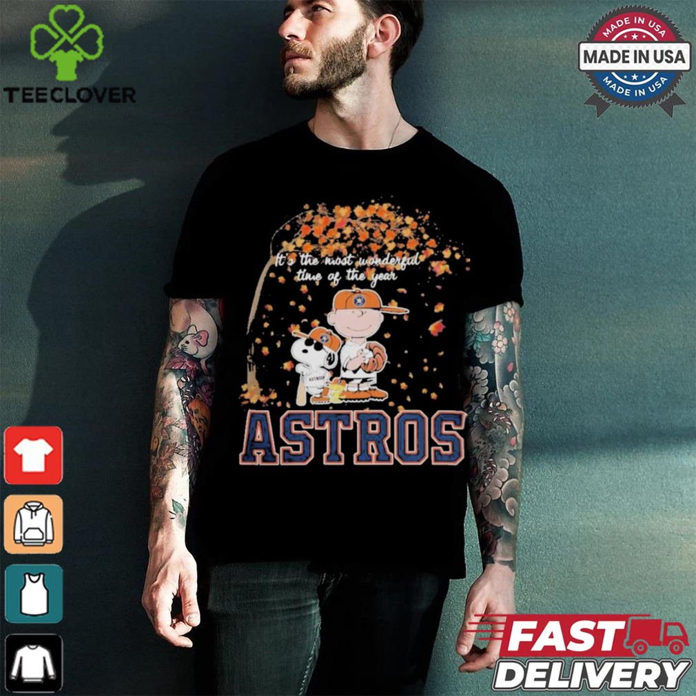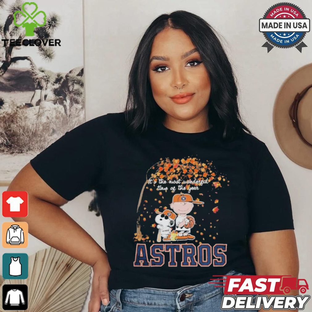 I can go out for dinner and within a Official Peanuts Characters X Houston Astros It’S The Most Wonderful Time Of The Year 2024 Shirt hour drive I can find awesome Italian food, good French restaurants, German, Polish, Indian, Thai, Vietnamese, Mexican, Ethiopian, Greek or Malaysian food and may others. Granted in NYC you can probably find all of that in a 3 block radius in NYC, but it is nice to have. I can go to a supermarket and find jicama, lemon grass and other exotic ingredients. If I can’t find it in the supermarket there is probably an ethnic food store within a short drive where I can. I can spend a day at the beach with many thousands of others laying blanket to blanket, or go to Island Beach State Park where the crowd is controlled and the scenery and sand dunes probably don’t look a lot different from what the first European settlers encountered when they reached the shores of NJ.