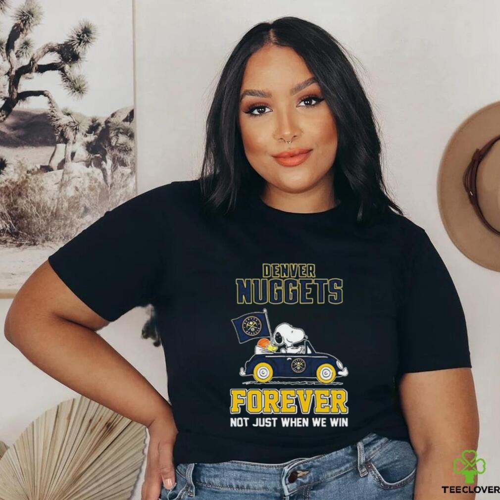 ()Official Peanuts Snoopy And Woodstock On Car Denver Nuggets Forever Not Just When We Win Shirt, Hoodie, Sweater, Vneck, Unisex and T-shirt
