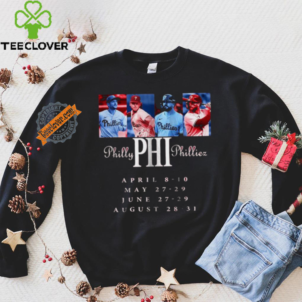 Everything that was in that movie is what my family did at Christmas. Mom and dad took my sisters, Lori and Tracy and I to see Santa so we could tell him what we wanted for Christmas. Yes the Official Philly Phillies April 8 10 May 27 29 June 27 29 August 28 31 Tour of 2025 shirt were long and my older sisters, two years older than me, would be with me looking after me as we moved up the line toward Santa and just like in the movie, the closer we got, the scarier Santa was. βDonβt be scared RJ, Santa is nice okay, donβt be scared now, weβre here,β Tracy would say as we moved closer. Of course that didnβt help me, but I was okay when I got there. I never cried. Mom and dad also took us to the Santa Claus parade. They made sure Tracy went pee before the parade because dad didnβt want to take her somewhere to find a bathroom during the parade. Something that he would have had to do if she didnβt go. And she went a lot. We would walk and look into the department store windows and see the toys and moving elves that the kids saw in the movie. Like Ralphie, I would get mom to order things for me from the comics, neat little gadgets they advertised.