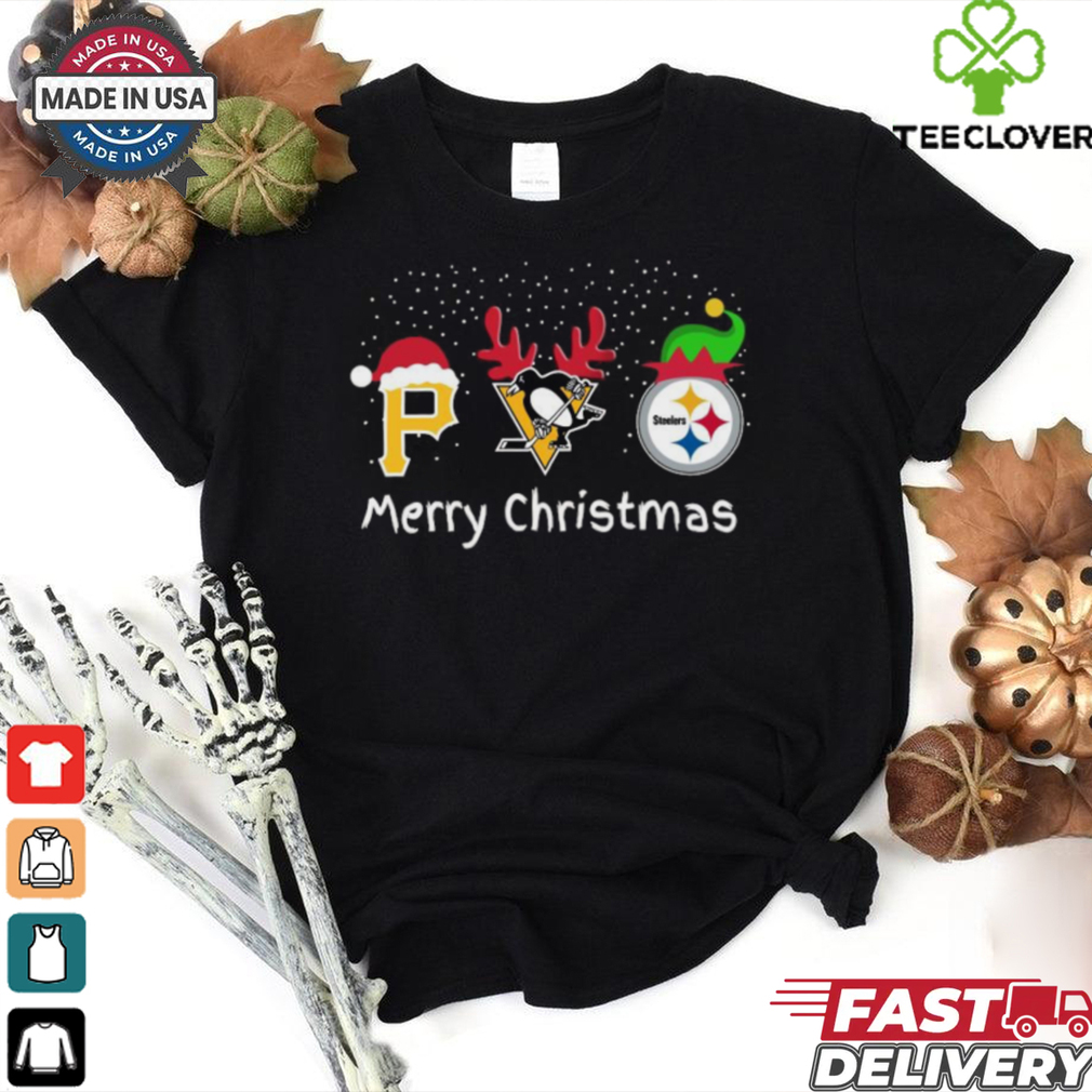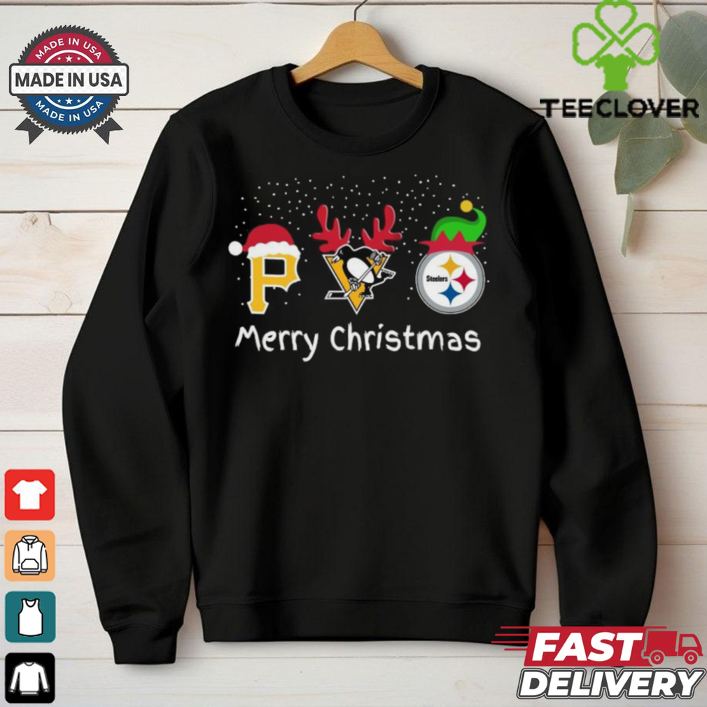 ()Official Pittsburgh Sports Pirates Penguins And Steelers Merry Christmas 2024 Shirt hoodie, tank top, sweater and long sleeve t-shirt: best style for you